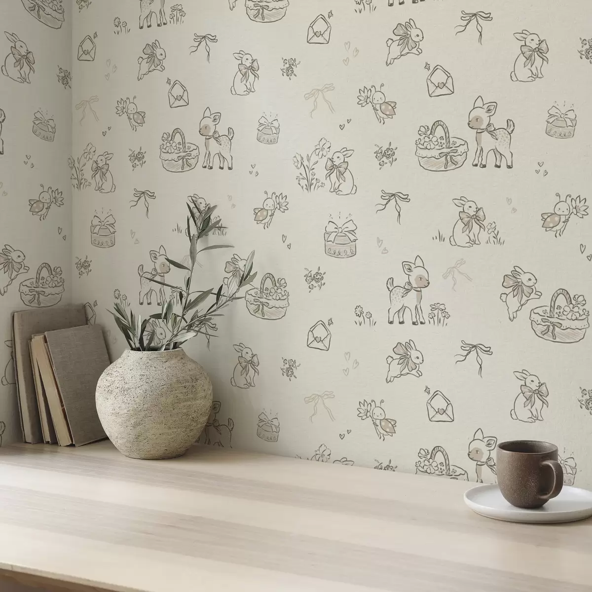 Tapeta Slatka šumska scena s jelenima, zečevima i pčelama br. a00215