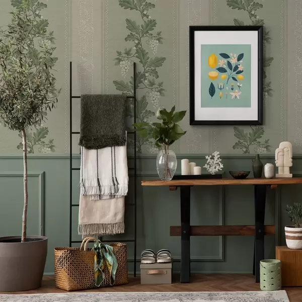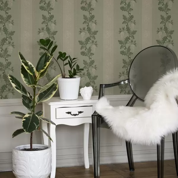 Tapeta Grozdovi grožđa i čipka, zeleni klasični uzorak br. a00223
