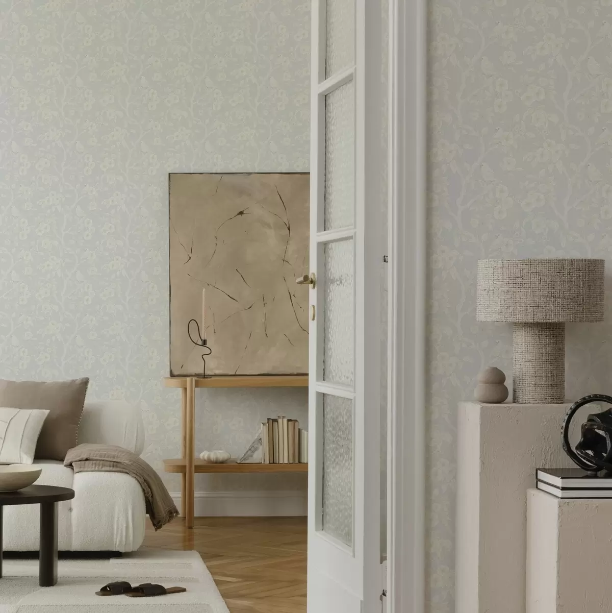Tapeta Lagani uzorak ptica na granama, pastelna paleta, klasika br. a00230
