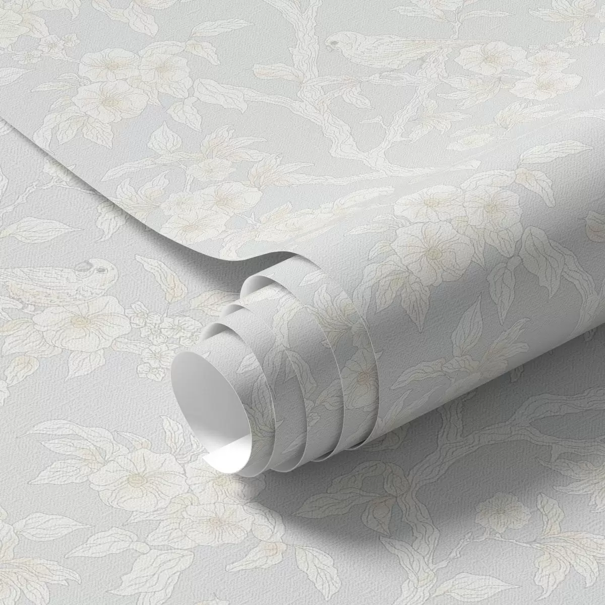 Tapeta Lagani uzorak ptica na granama, pastelna paleta, klasika br. a00230