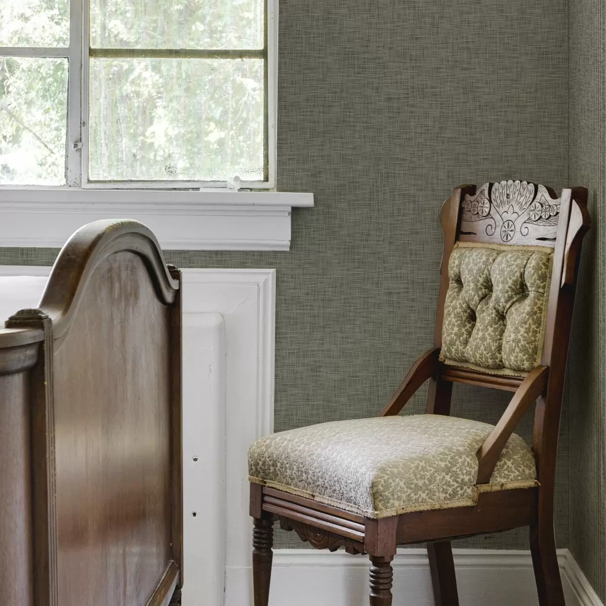 Tapeta Tekstura sivo-zelene tkanine, uzorak mreže lana br. a00235