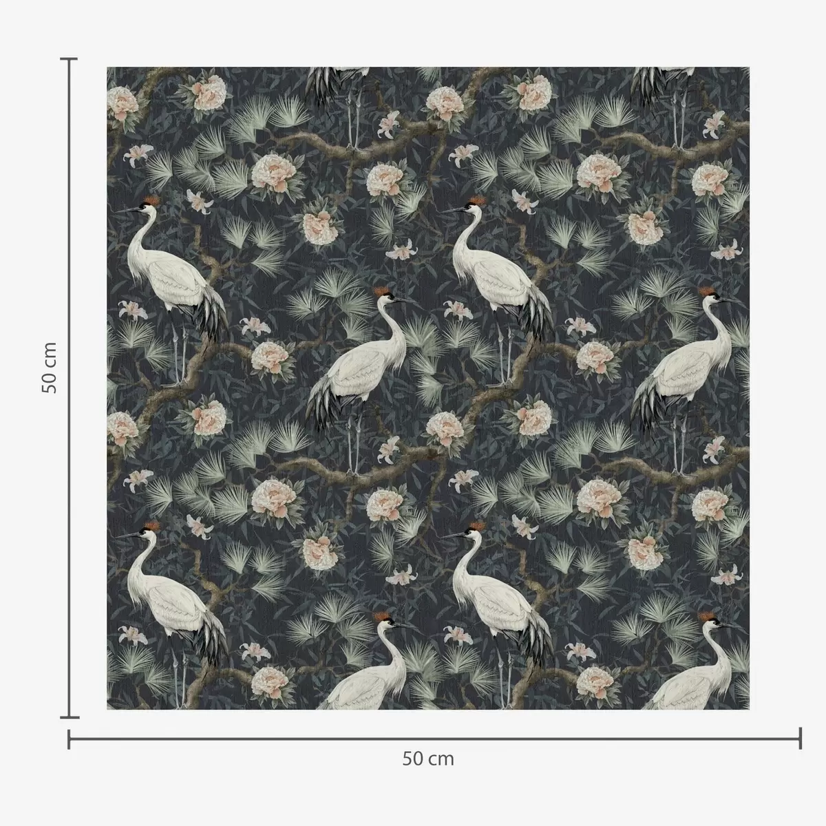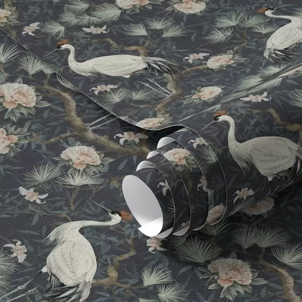 Tapeta Ždralovi među borovima i božurima na tamnoj pozadini br. a00241