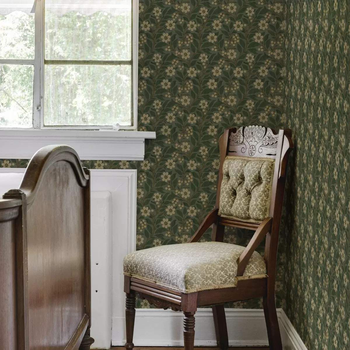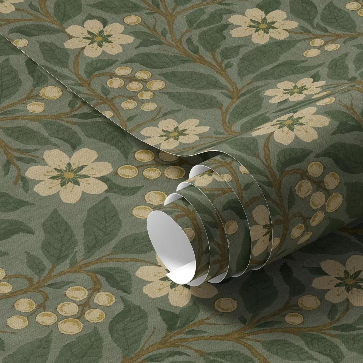 Tapeta Žuto cvijeće i bobice na zelenoj pozadini br. a00242