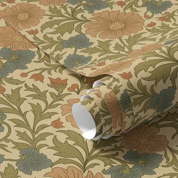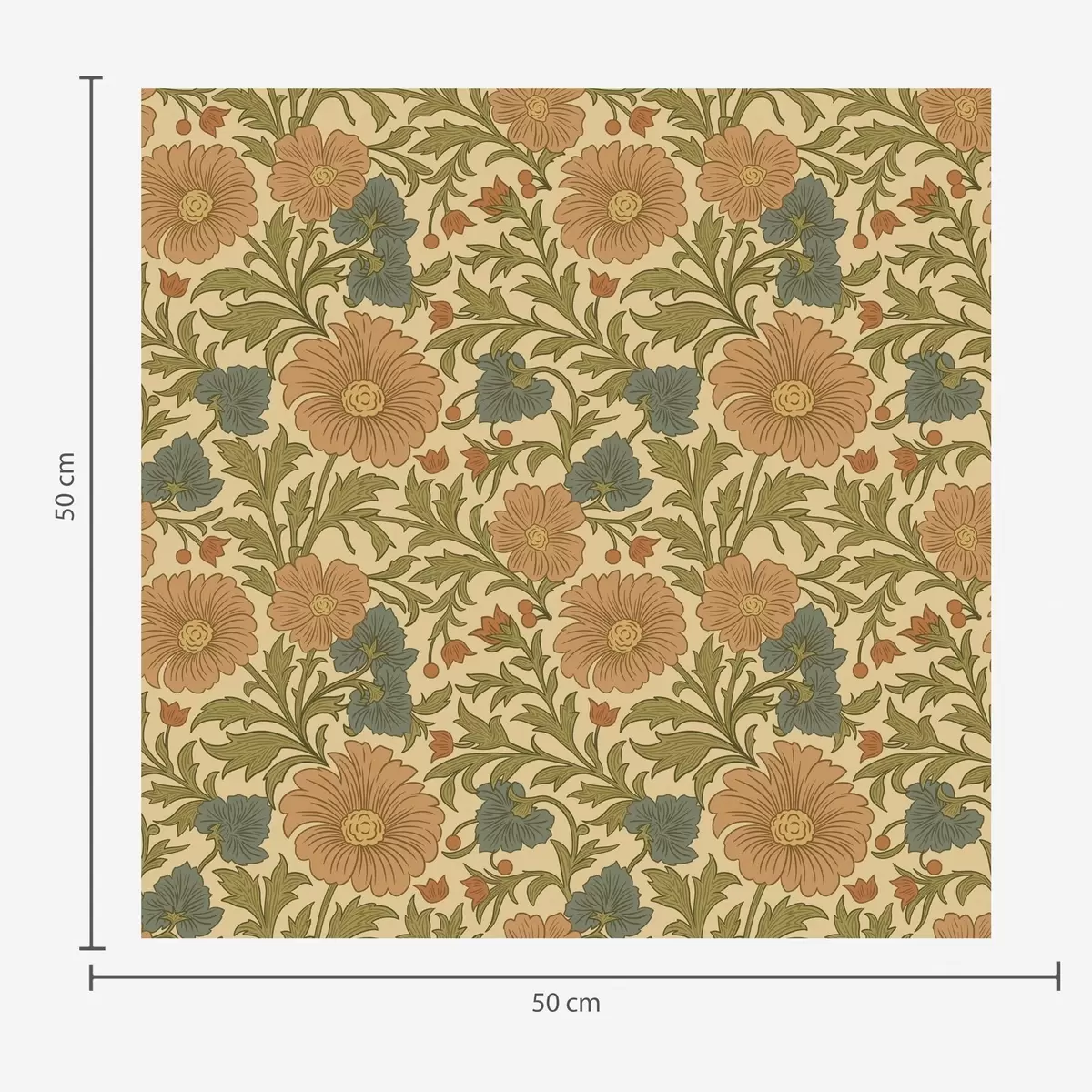 Tapeta Retro uzorak s narančastim i plavim cvijećem br. a00245