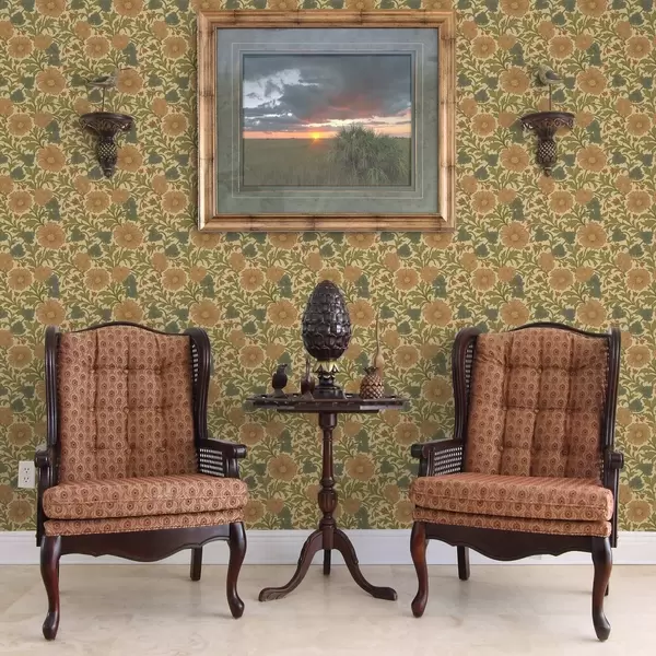 Tapeta Retro uzorak s narančastim i plavim cvijećem br. a00245