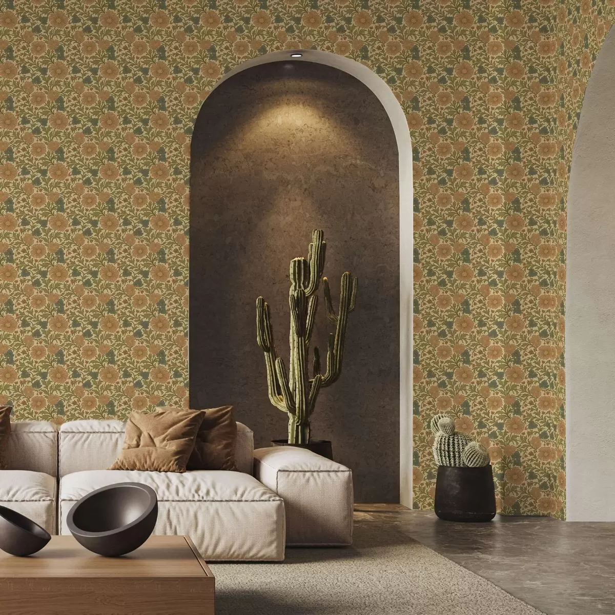 Tapeta Retro uzorak s narančastim i plavim cvijećem br. a00245