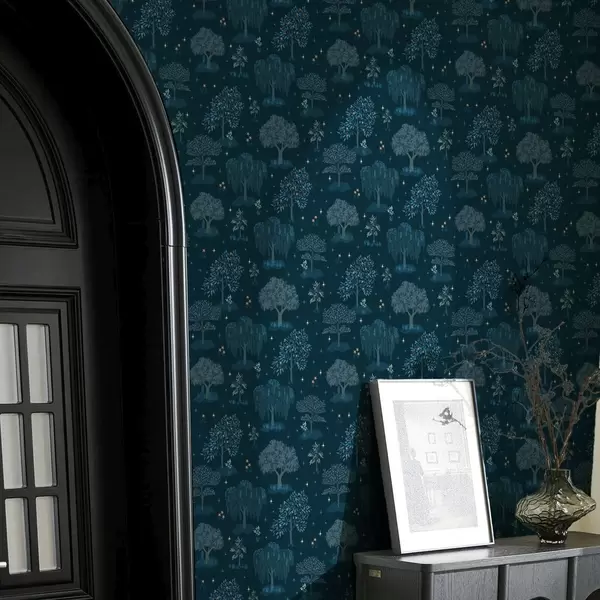Tapeta Vilinska noćna šuma sa zvijezdama i ukrasnim drvećem br. a00248