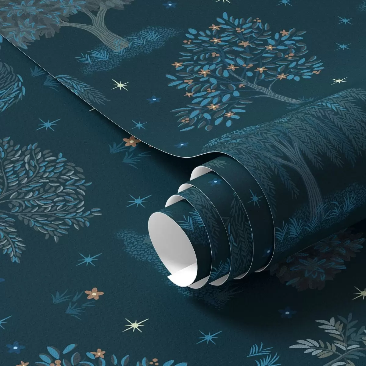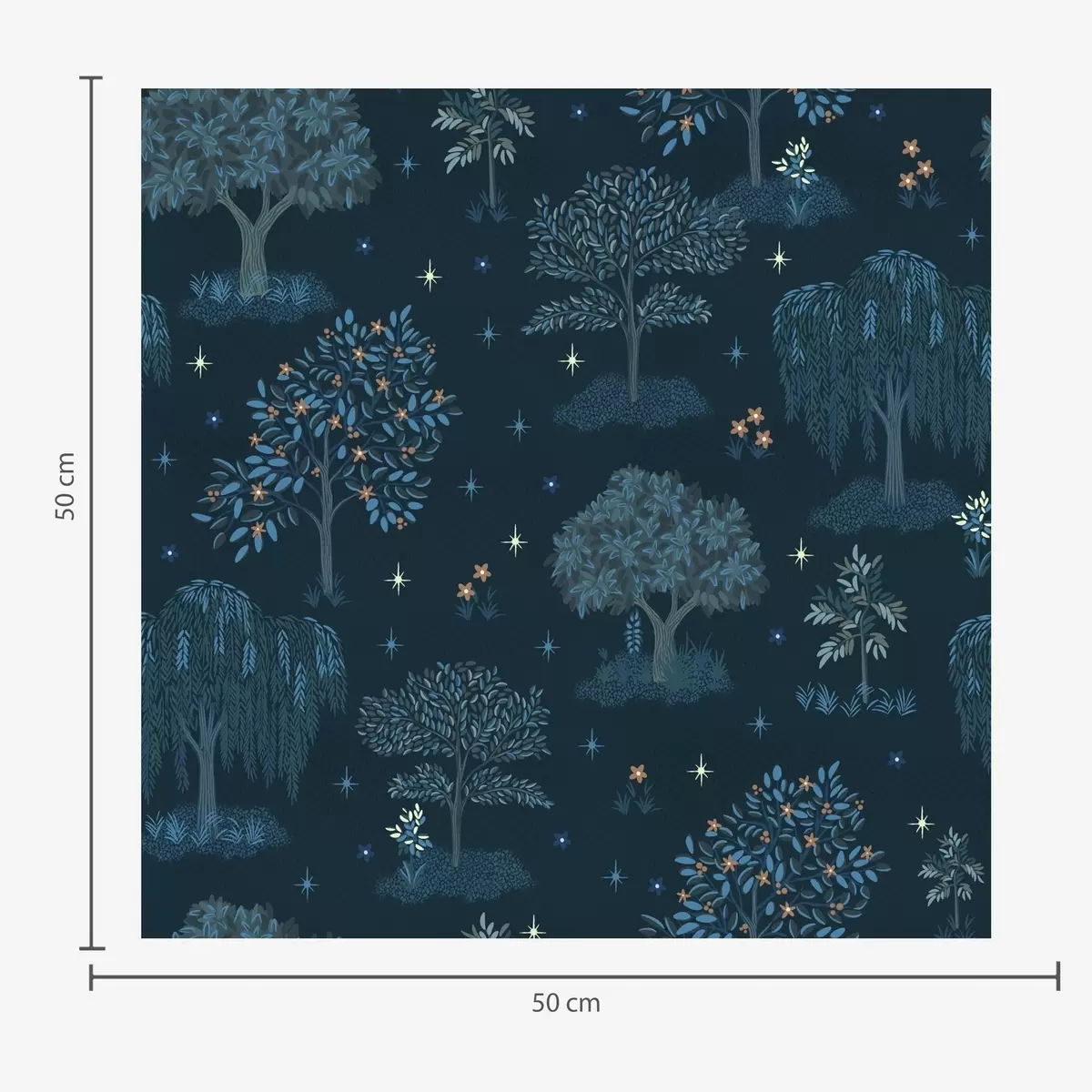 Tapeta Vilinska noćna šuma sa zvijezdama i ukrasnim drvećem br. a00248