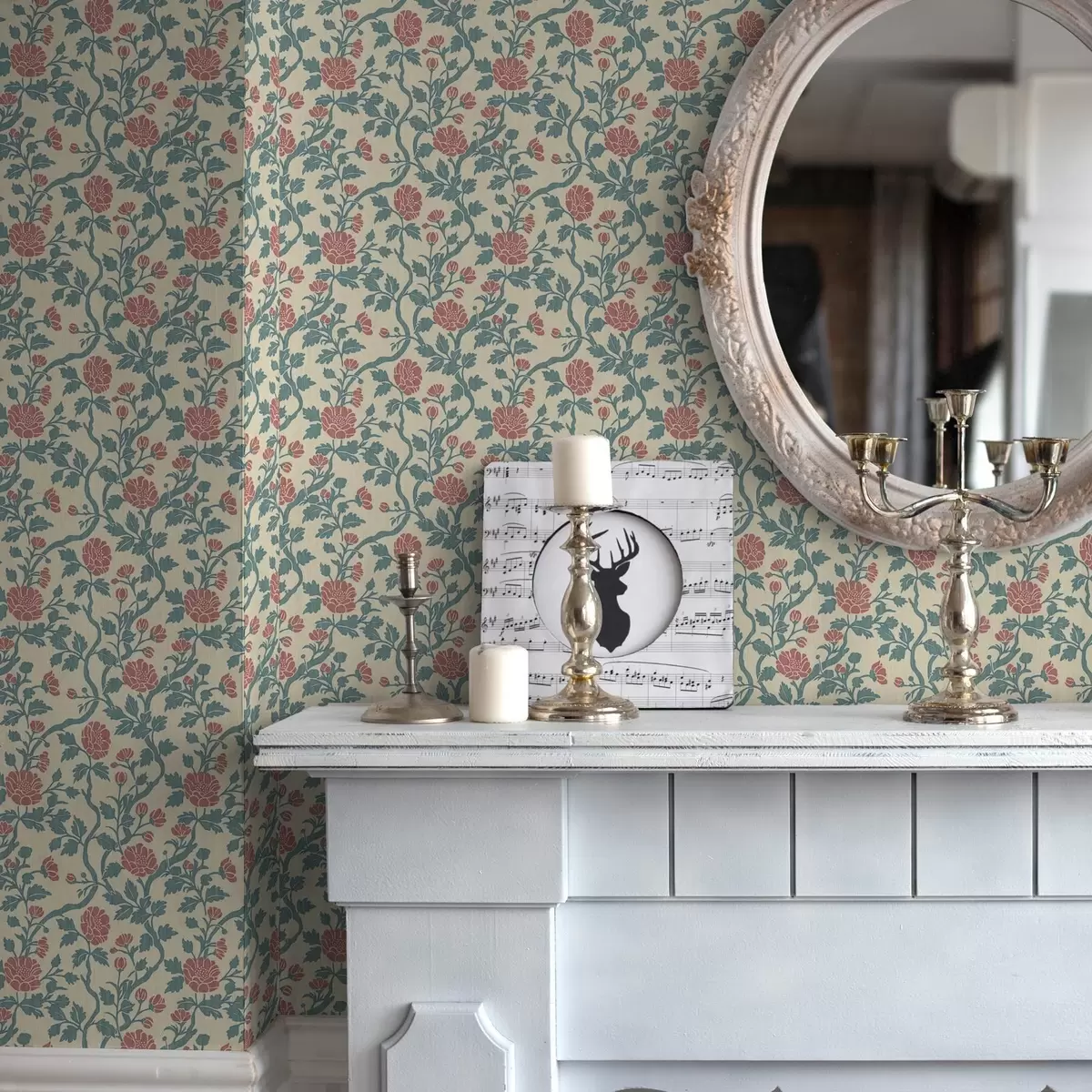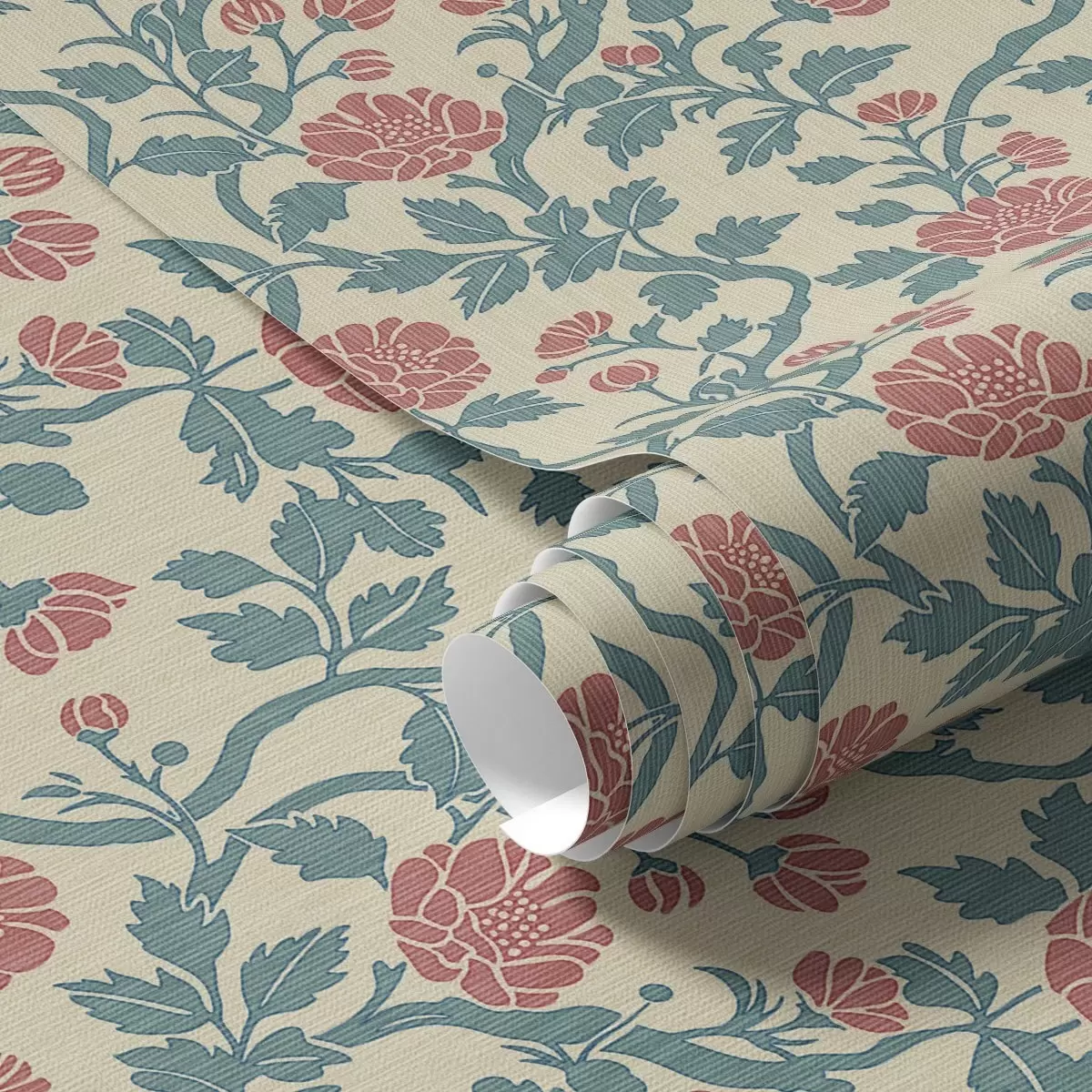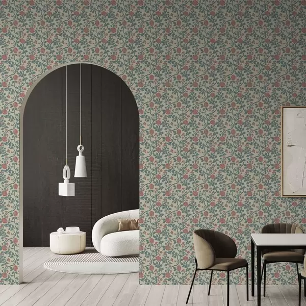 Tapeta Retro uzorak s cvijećem u crvenoj i zelenoj boji br. a00250