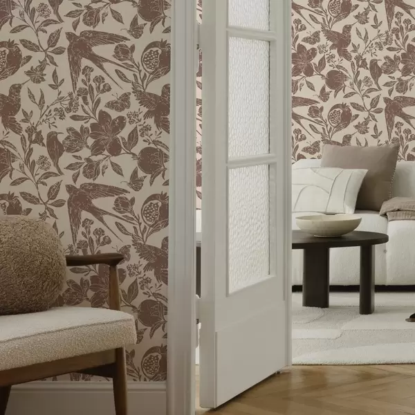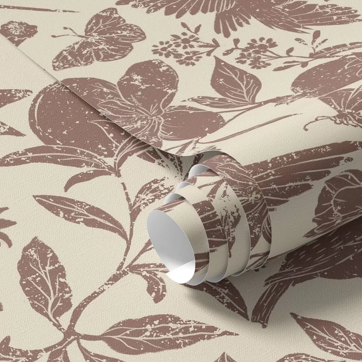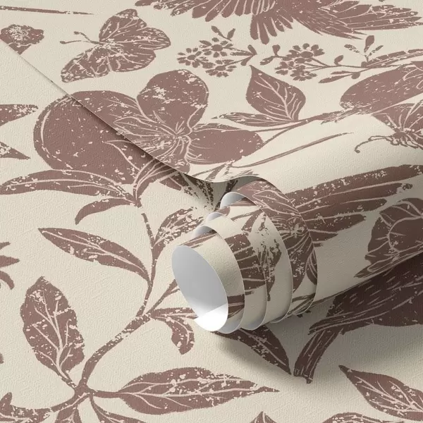 Tapeta Ptice, šipak i cvijeće u vintage stilu br. a00263