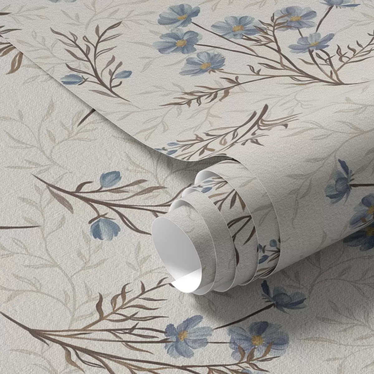 Tapeta Mali plavi cvjetovi sa smeđim grančicama br. a00265