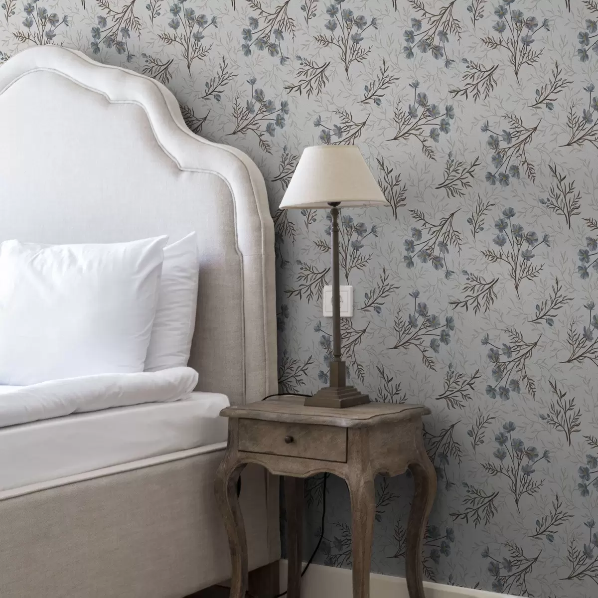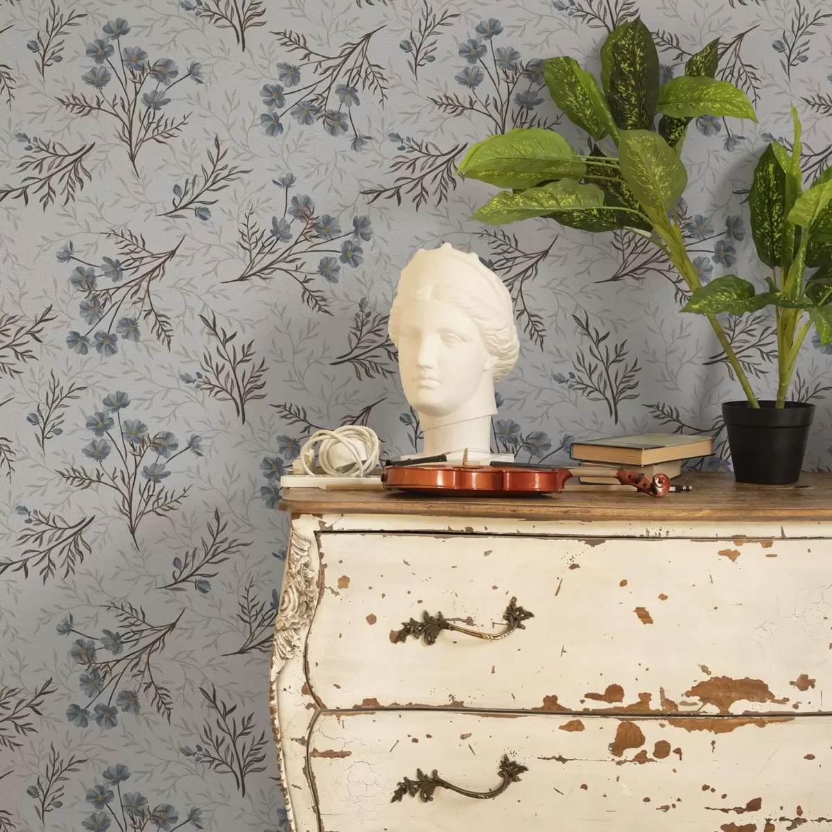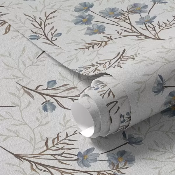 Tapeta Plavo cvijeće i svijetle grane na bijeloj pozadini br. a00265v1