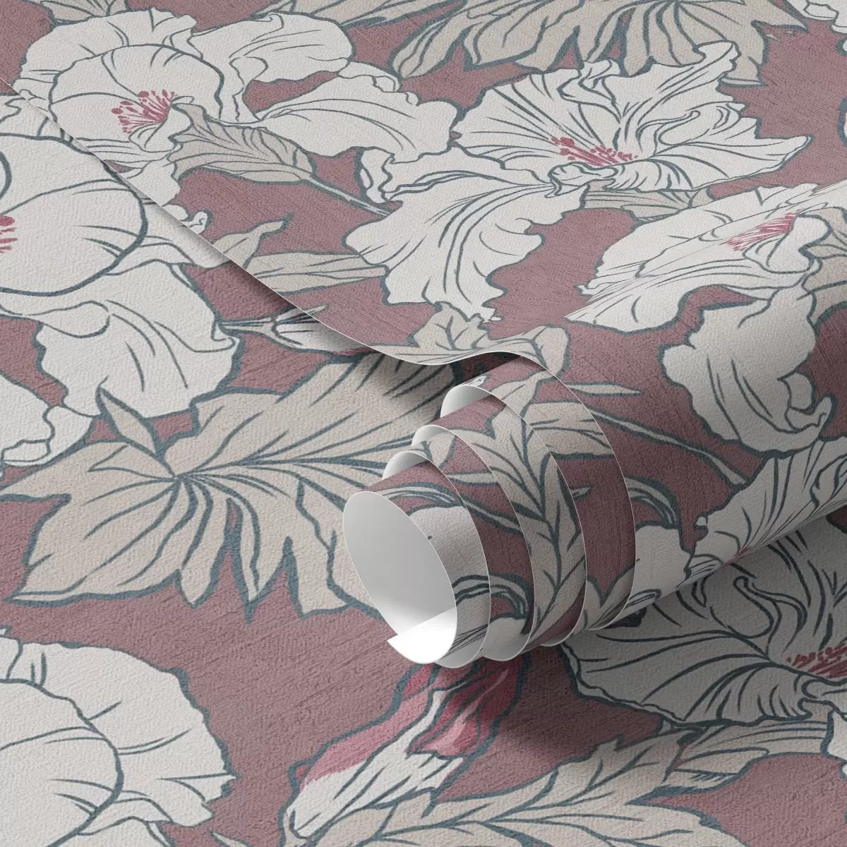 Tapeta Bijeli hibiskus na ružičastoj pozadini s crvenim pupoljcima br. a00272