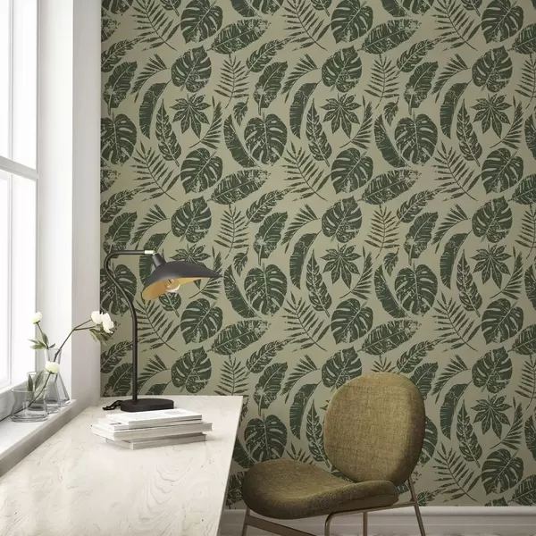 Tapeta Tropsko lišće u linorezu, zeleno na žutoj podlozi br. a00274