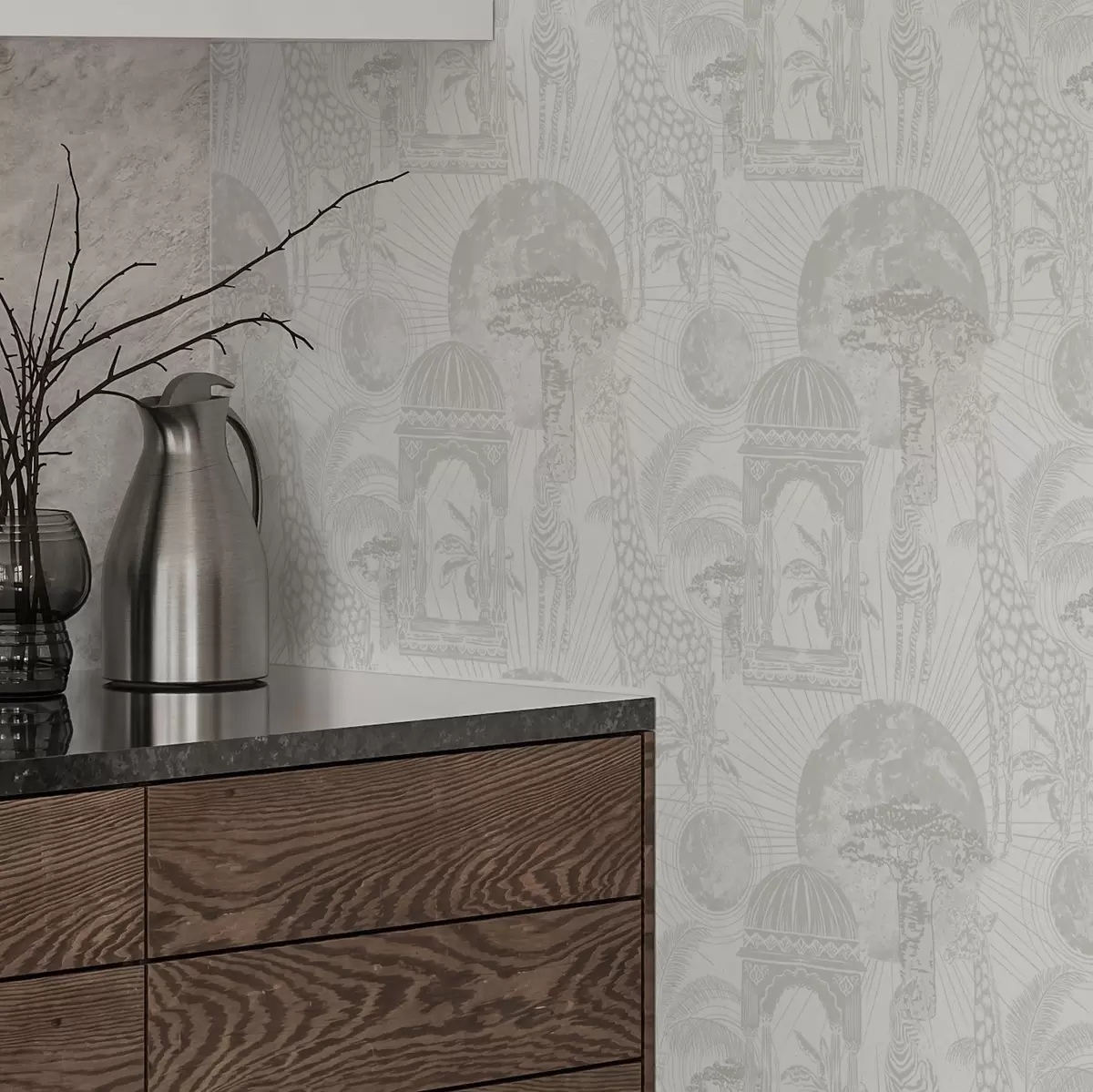 Tapeta Grafička ilustracija sa žirafom, zebrom i palmama br. a00276v1