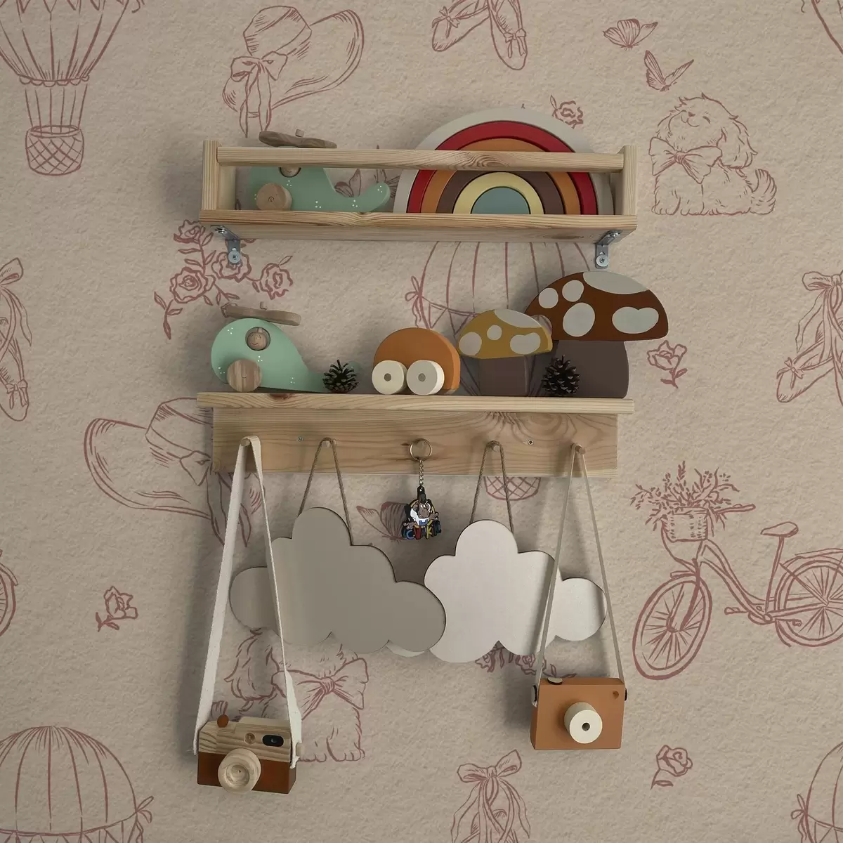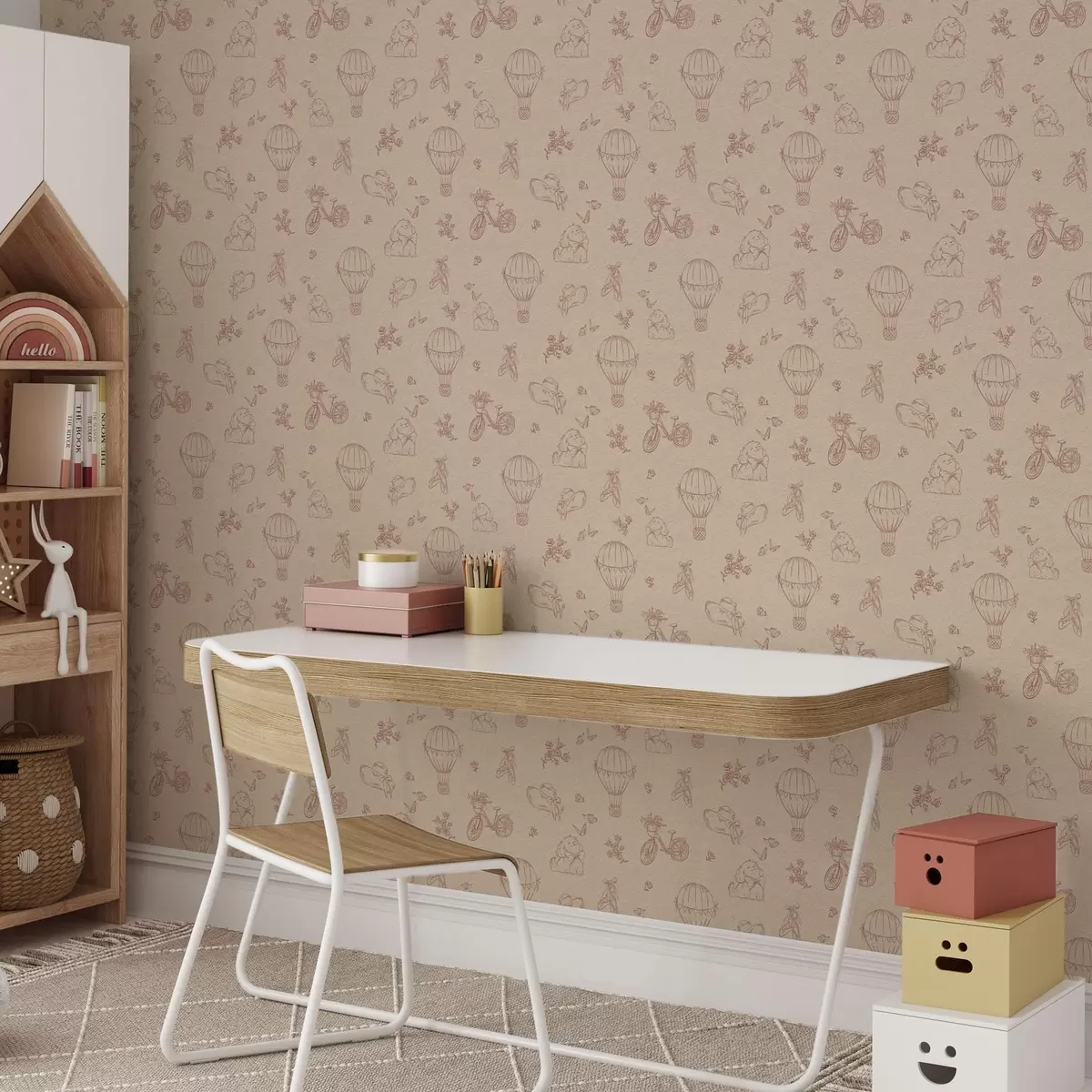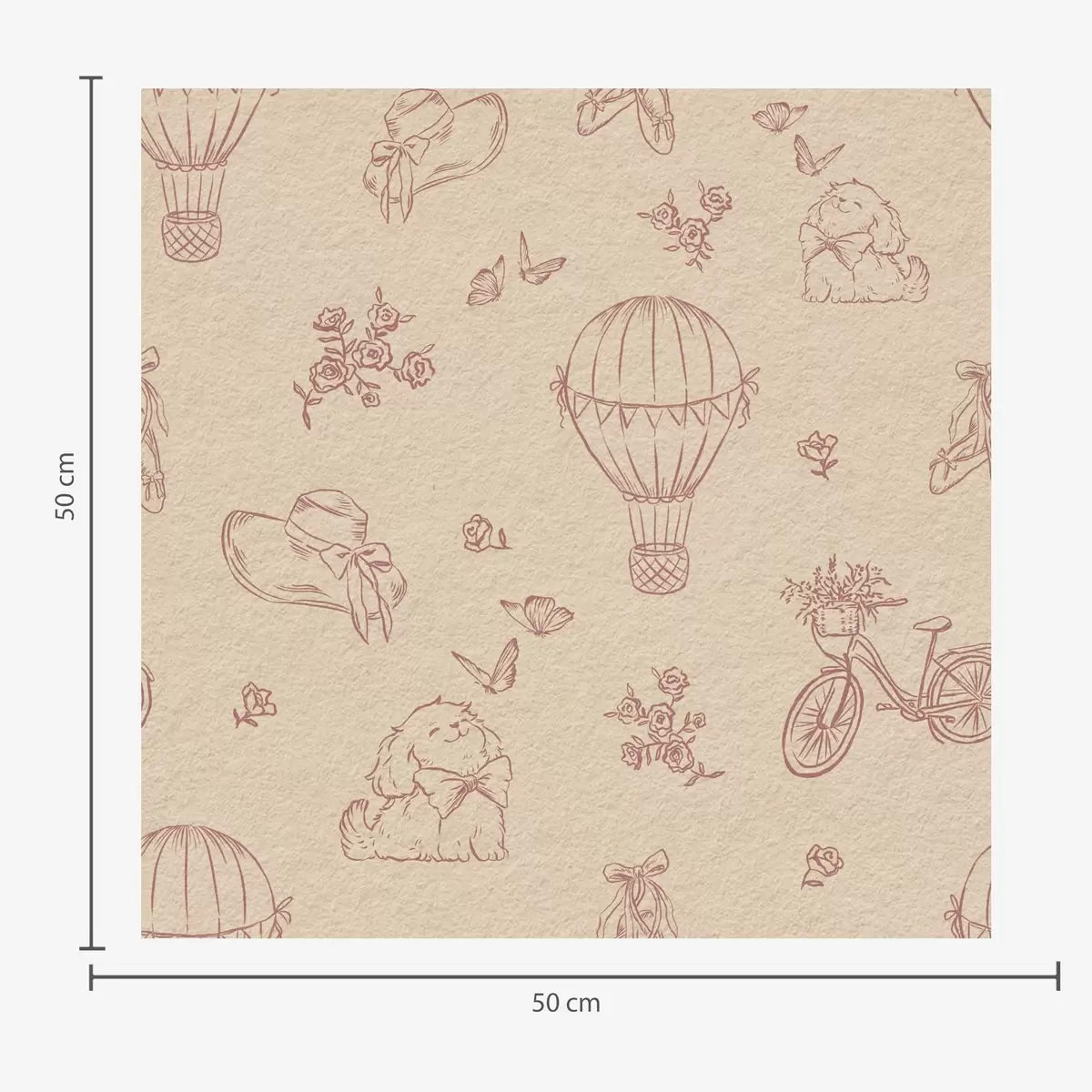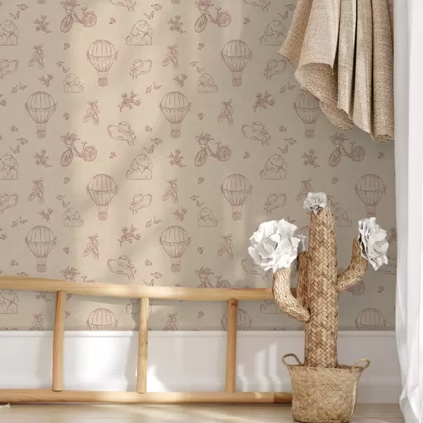 Tapeta Dječje ružičasti uzorak sa psom, cvijećem i zrakom br. a00279
