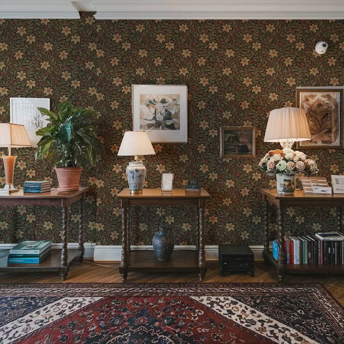 Tapeta Tamna pozadina sa žutim i crvenim cvijećem u secesijskom stilu br. a00293