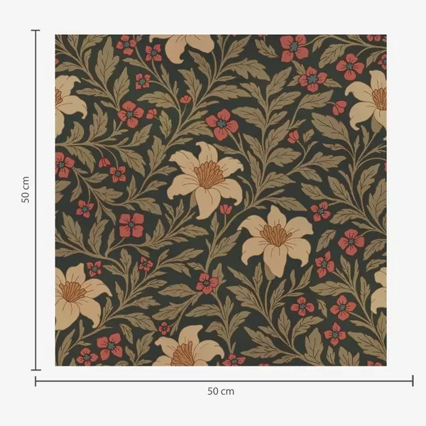 Tapeta Tamna pozadina sa žutim i crvenim cvijećem u secesijskom stilu br. a00293