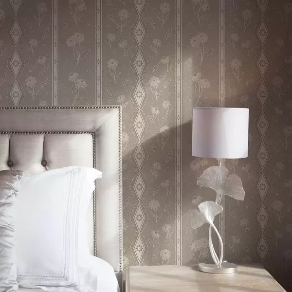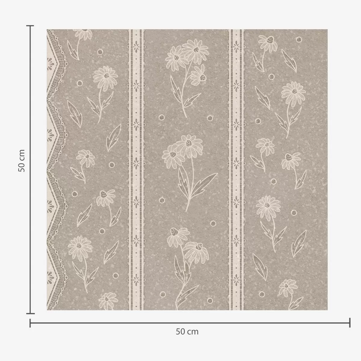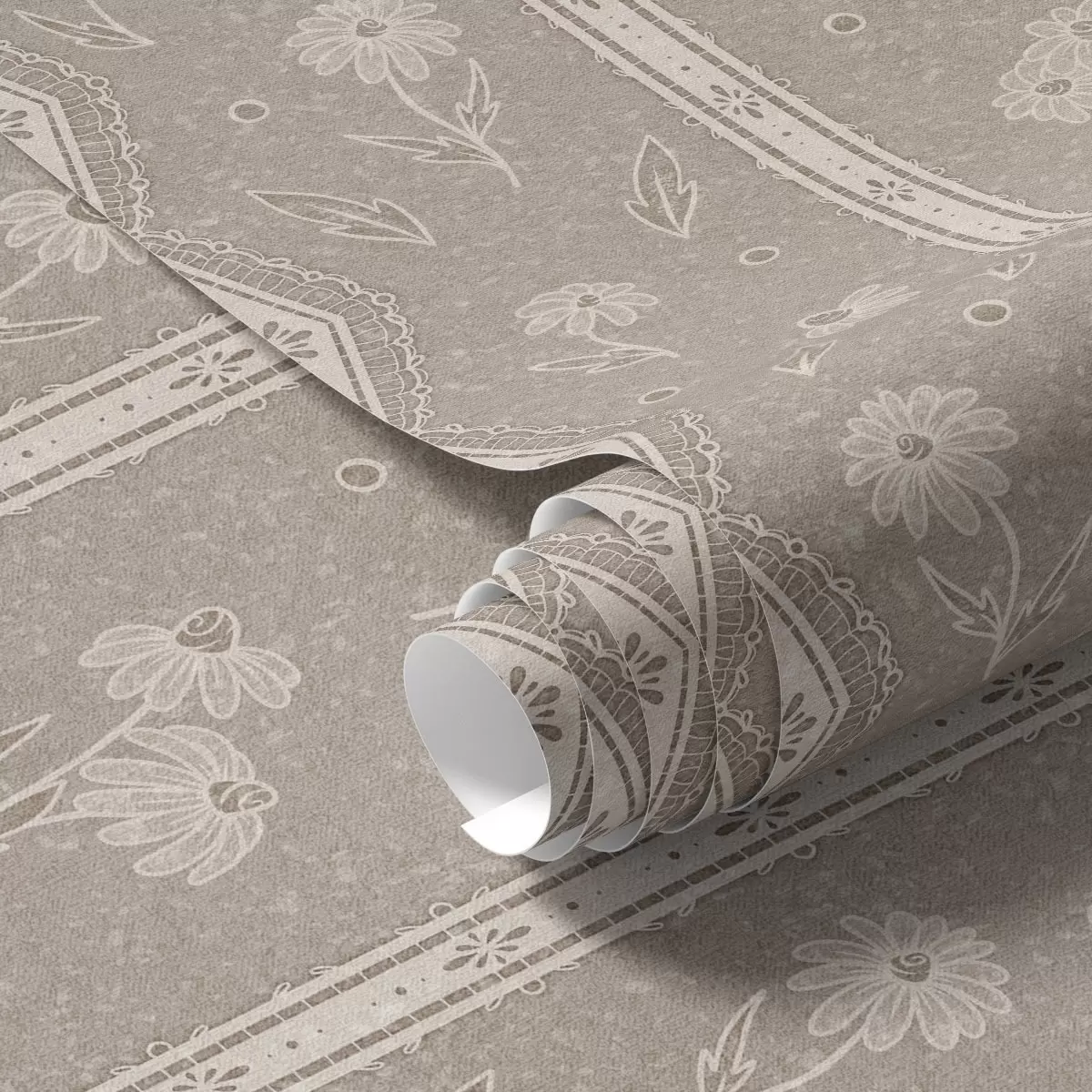 Tapeta Pruge s tratinčicama i čipkom na sivo-bež pozadini br. a00295