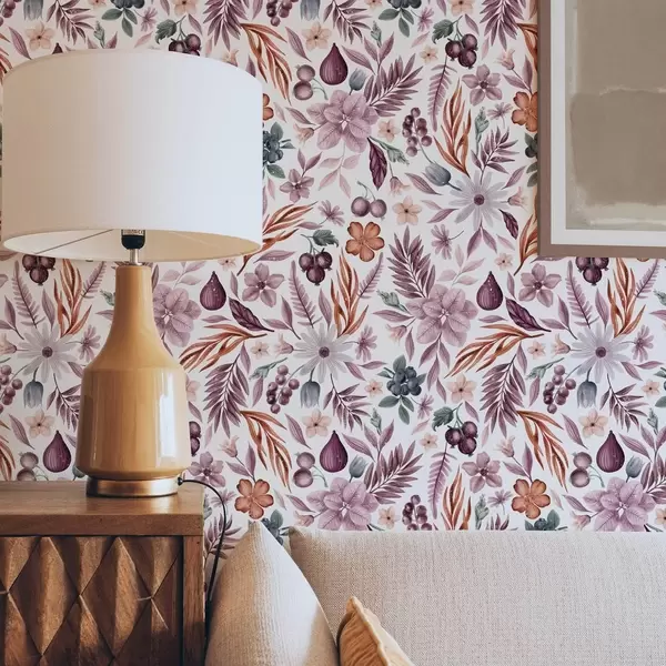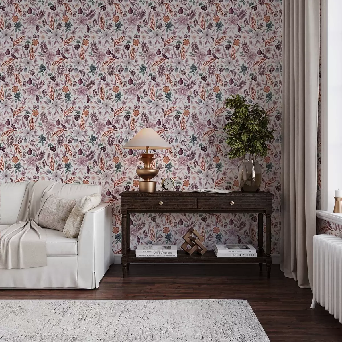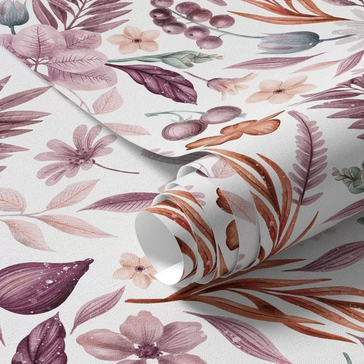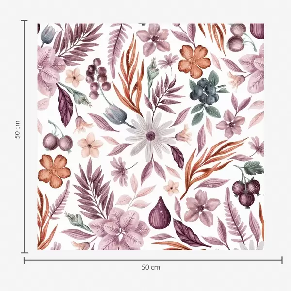 Tapeta Svijetle bobice, cvijeće i lišće u stilu akvarela br. a00298