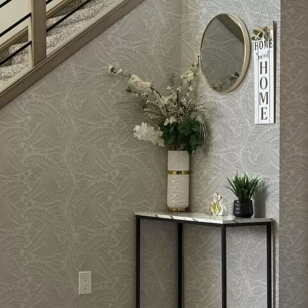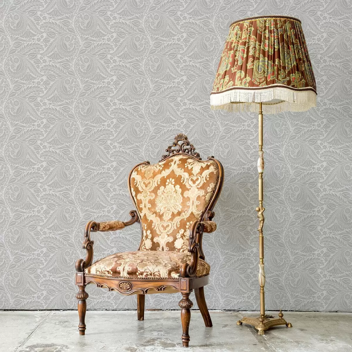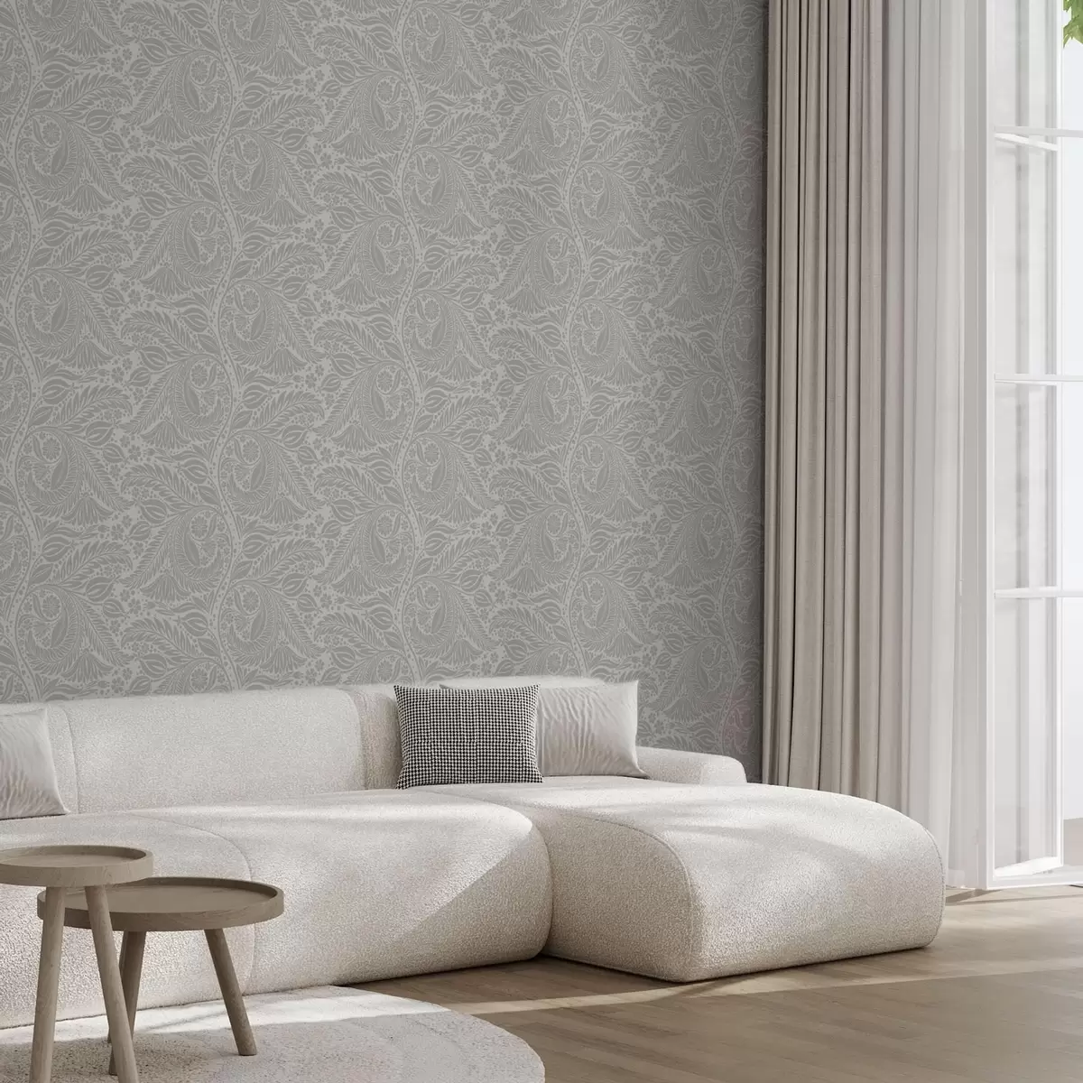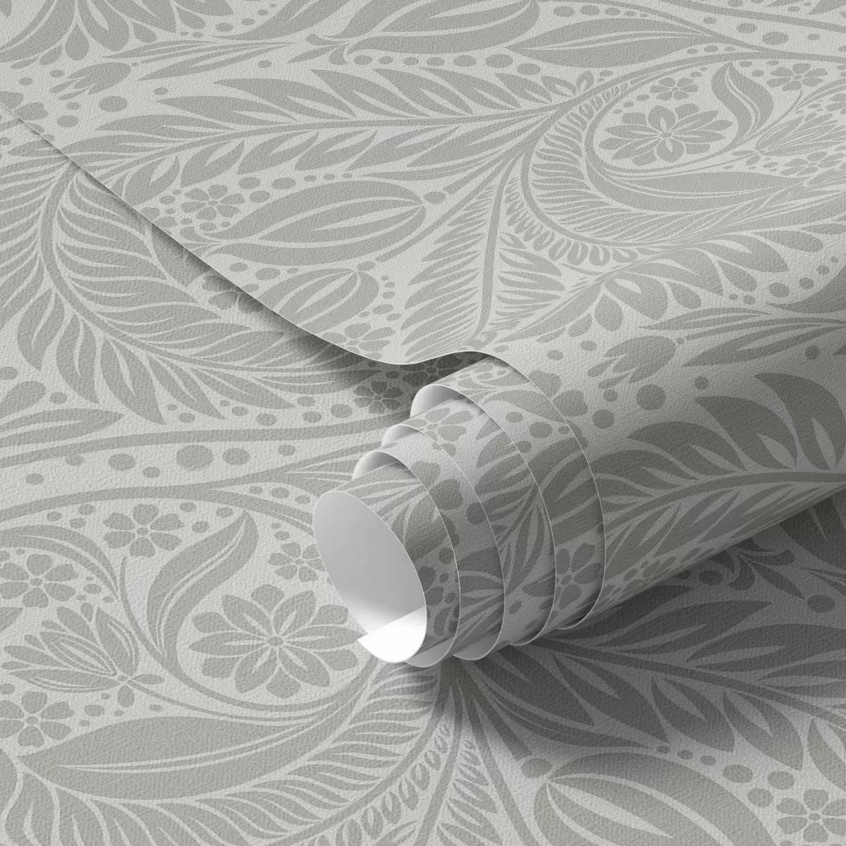 Tapeta Siva folklorna stilizacija s lišćem i cvijećem br. a00301