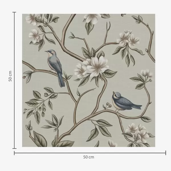 Tapeta Grane s pticama i bijelim cvijećem na nježnoj pozadini br. a00303