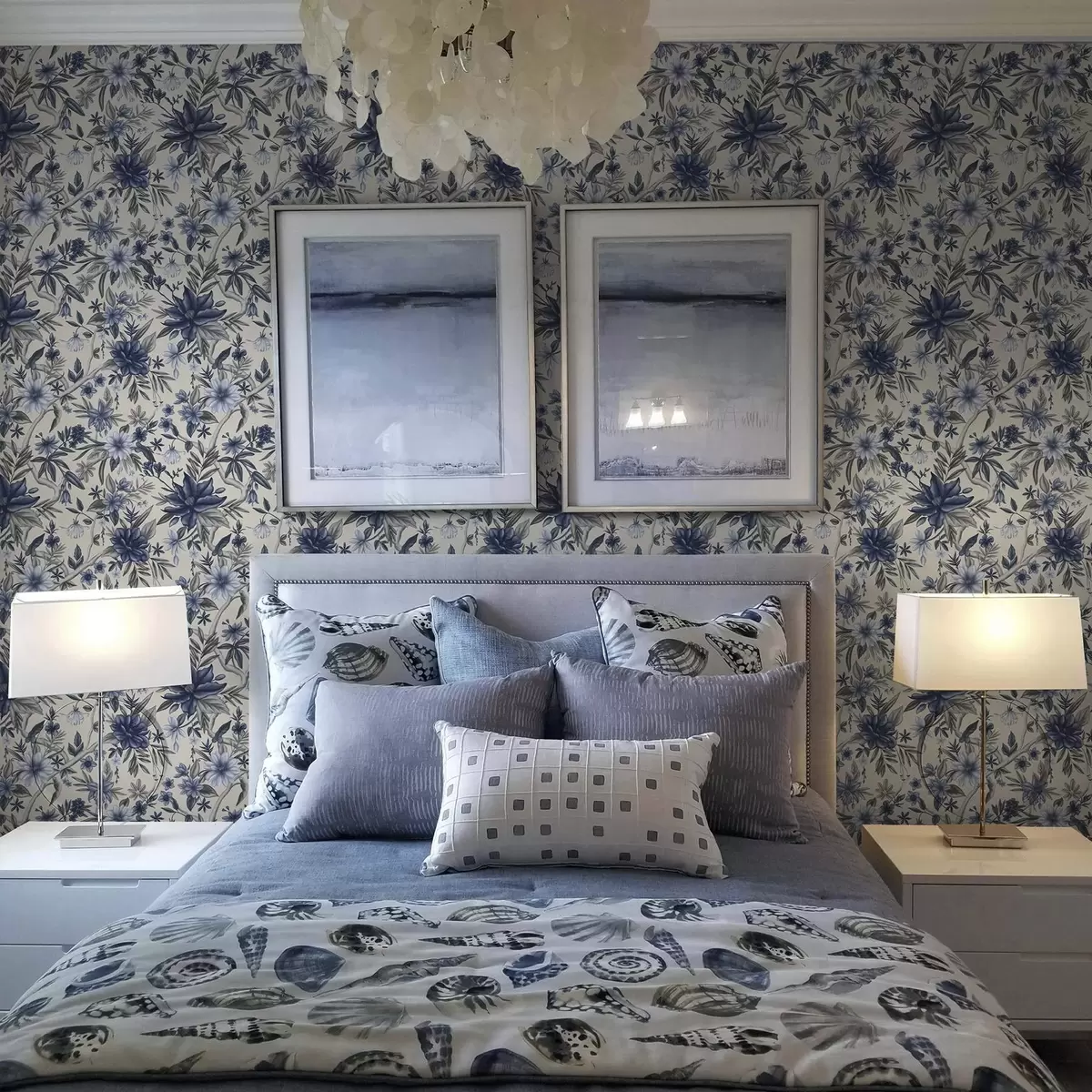 Tapeta Plavo i sivo cvijeće na svijetloj pozadini br. a00304