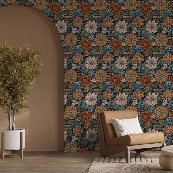Tapeta Svijetlo ukrasno cvijeće s geometrijskim elementima br. a00305