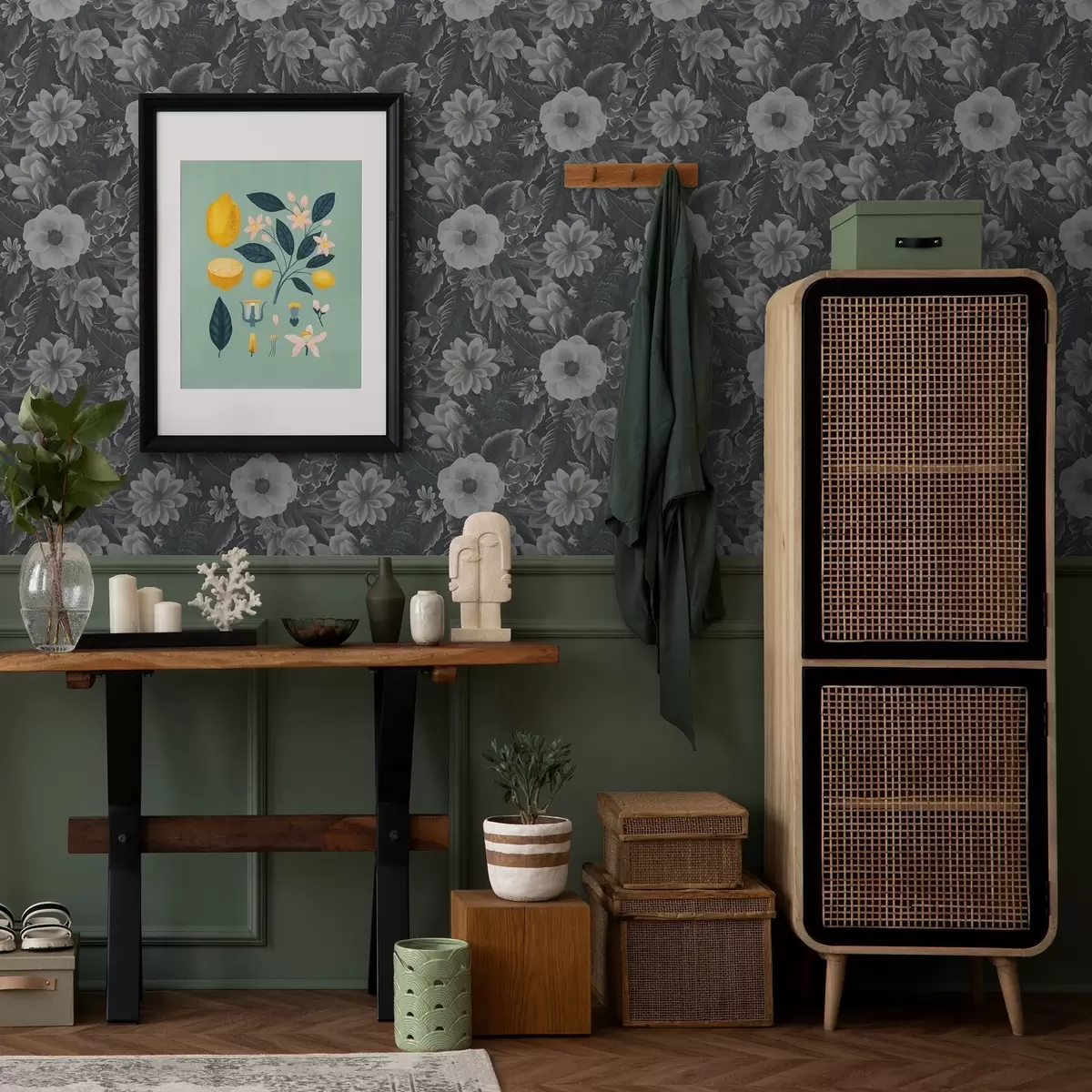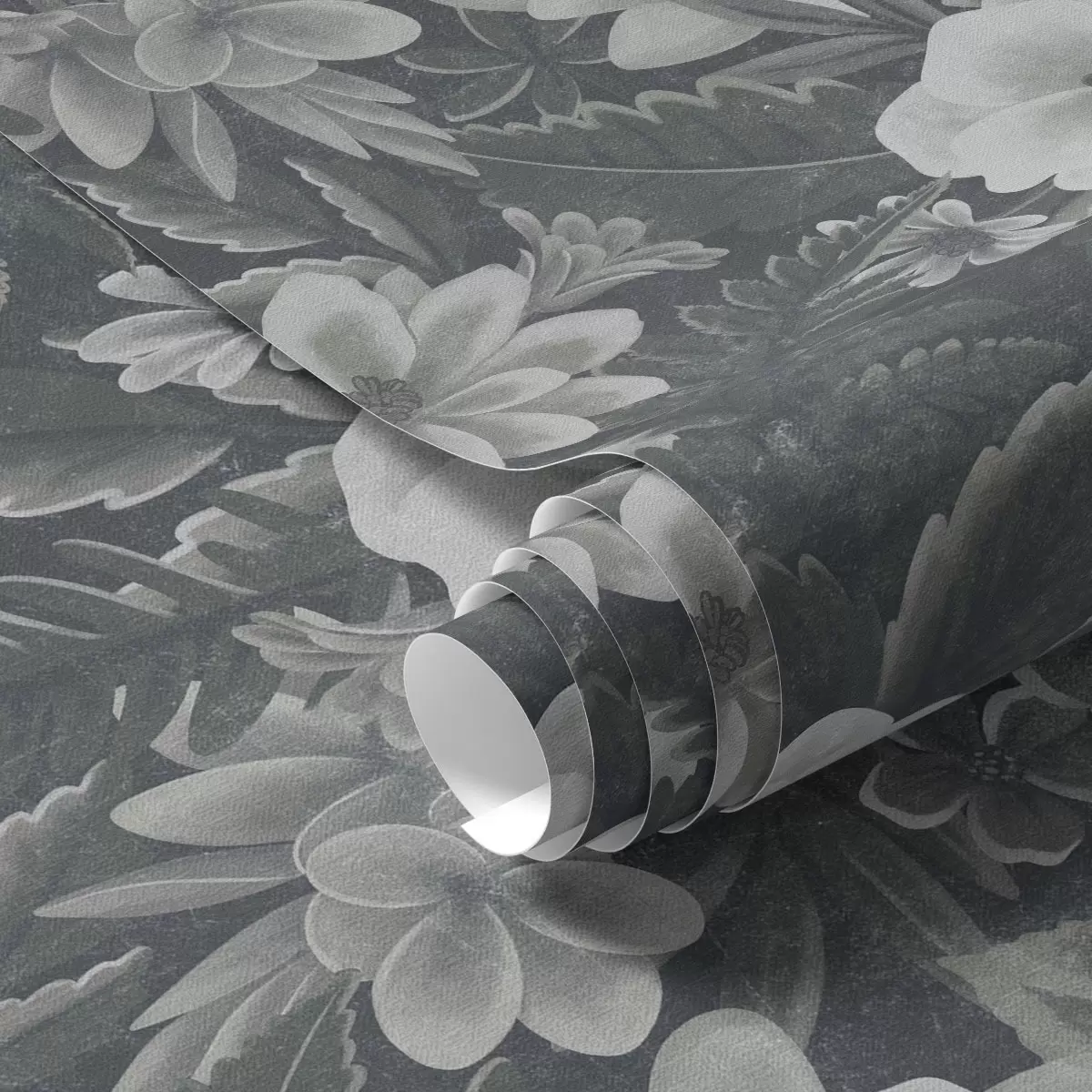 Tapeta Sivi i bijeli cvjetni uzorak s retro efektom br. a00307