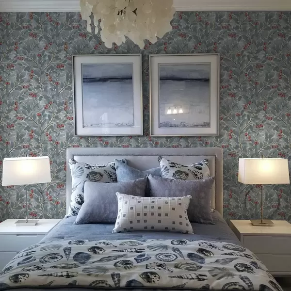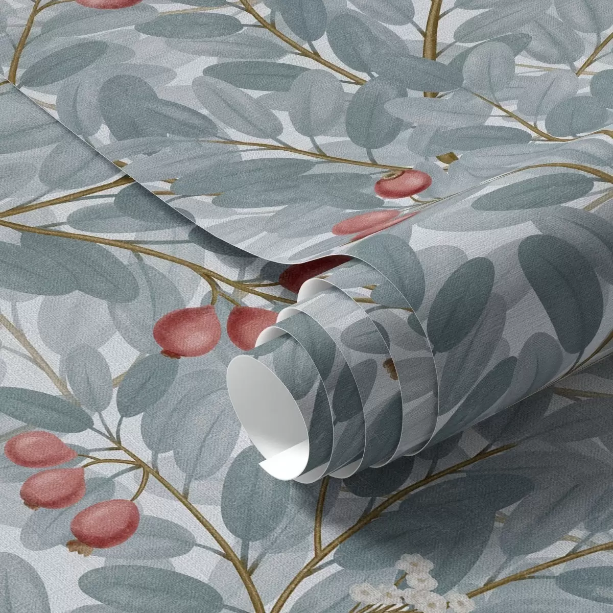 Tapeta Plavo lišće s grančicama crvenih bobica br. a00309