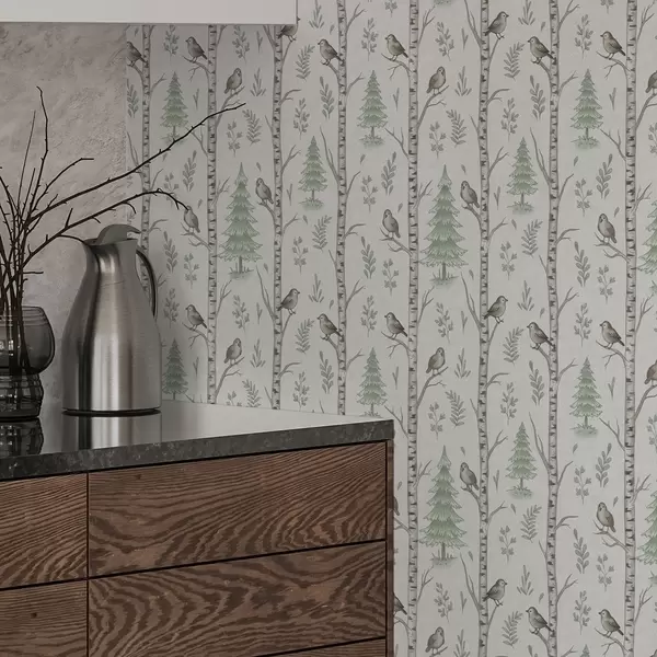 Tapeta Breze s pticama u svijetlozelenoj šumi br. a00316