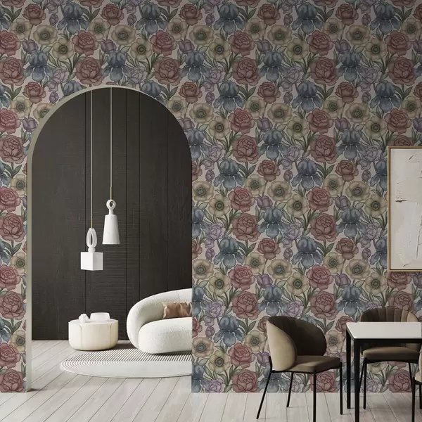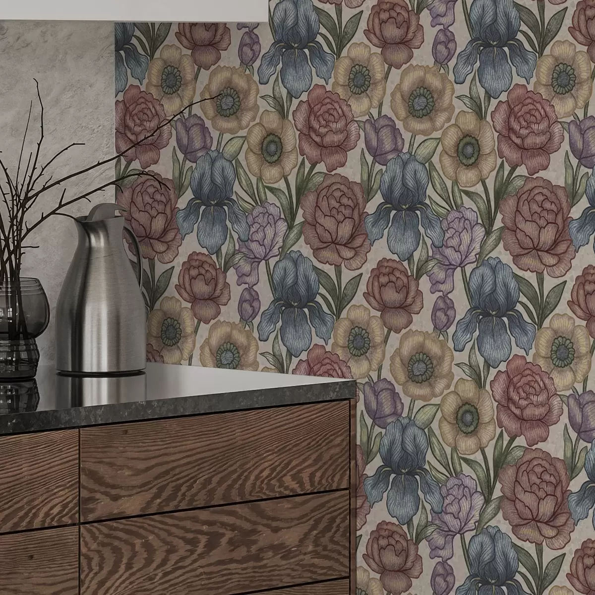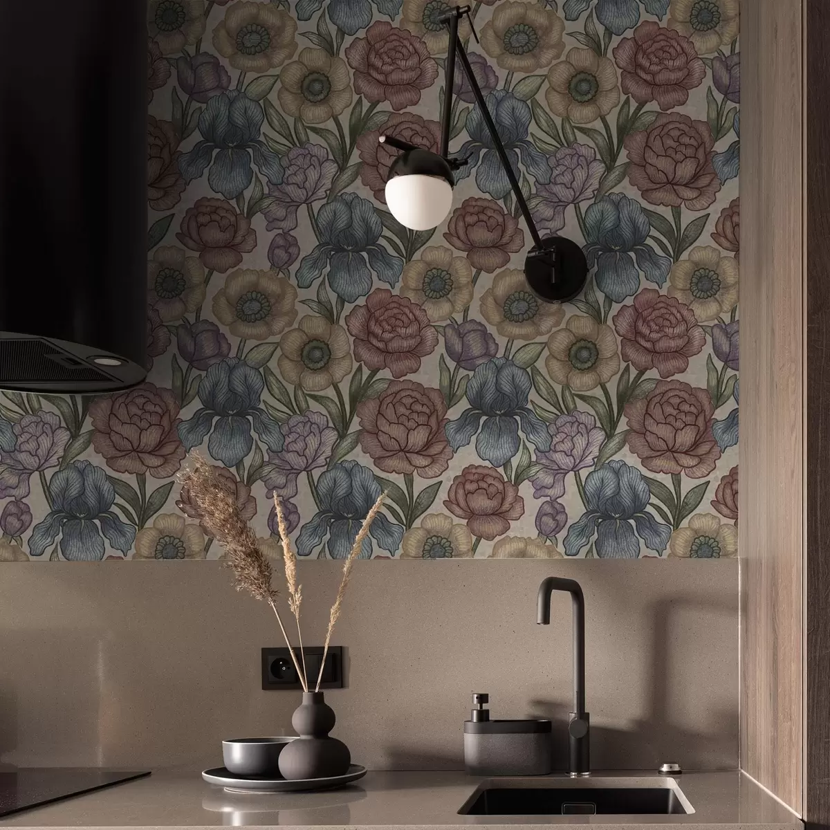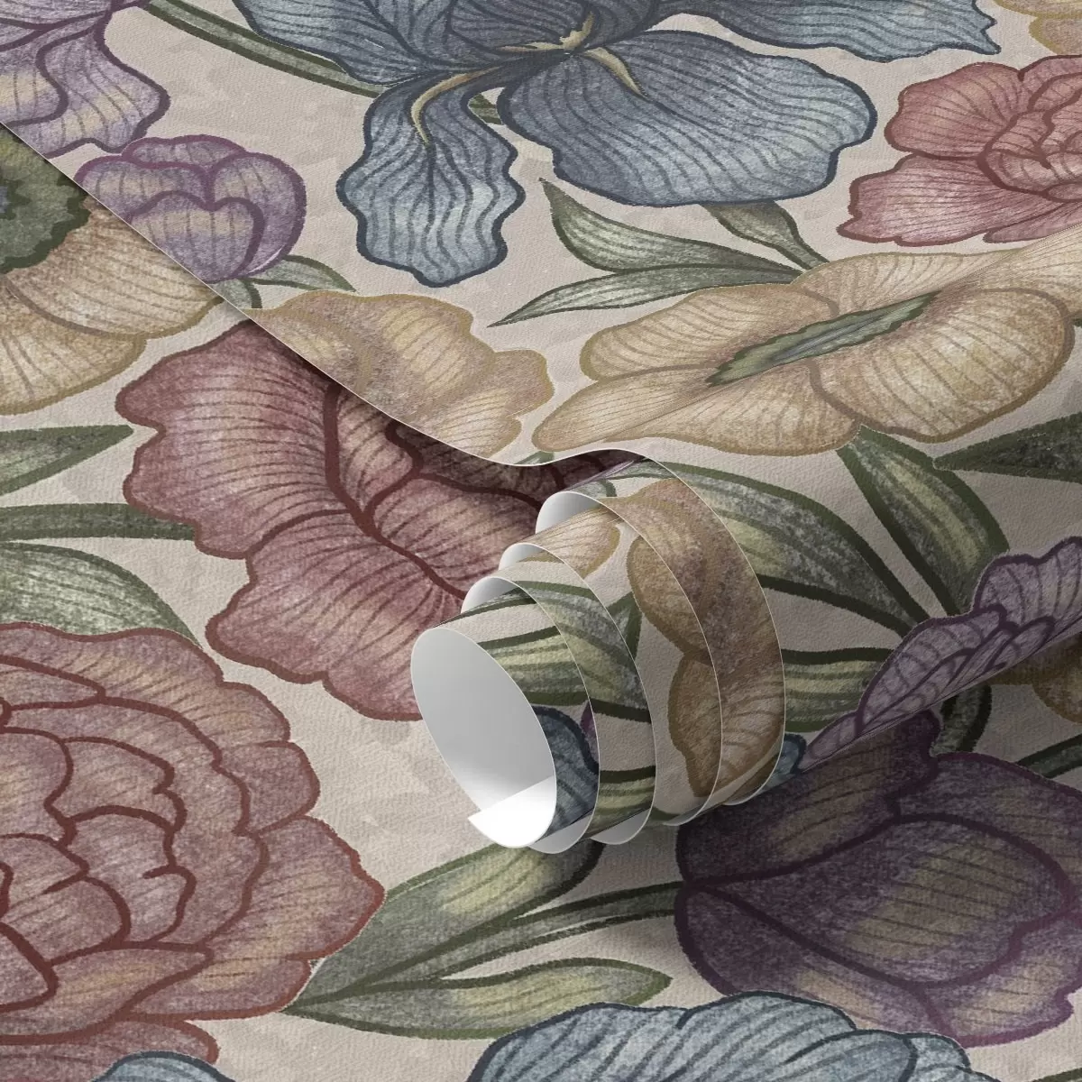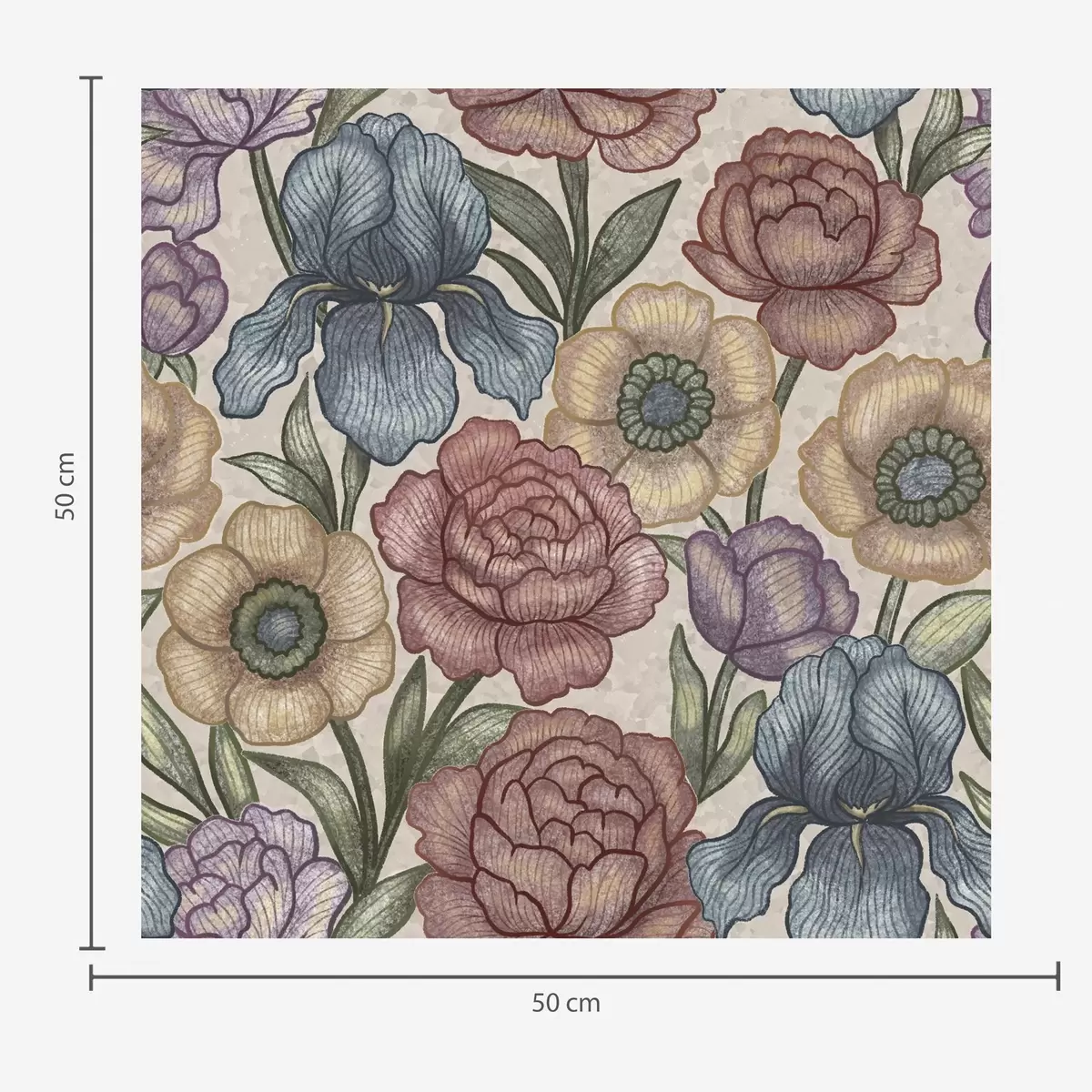 Tapeta Velike cvjetne ilustracije s perunikama i božurima br. a00325