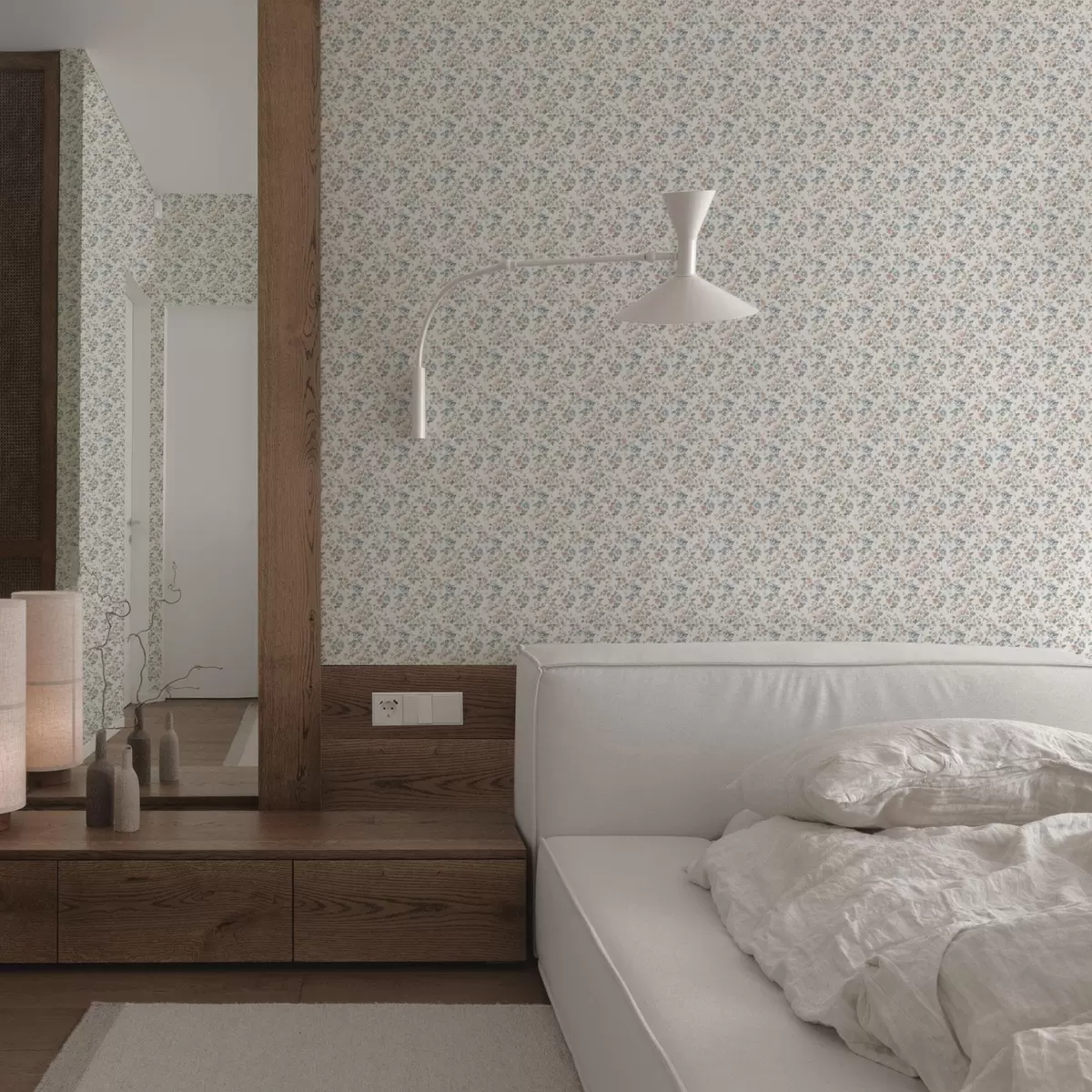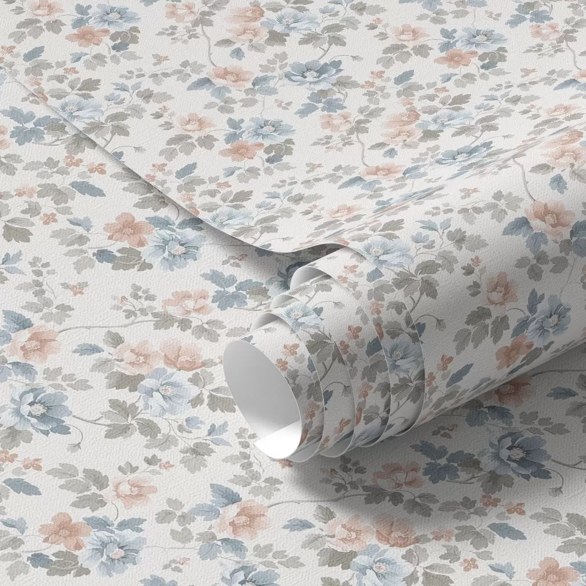 Tapeta Mali cvjetni ukras u plavim i koraljnim tonovima br. a00347