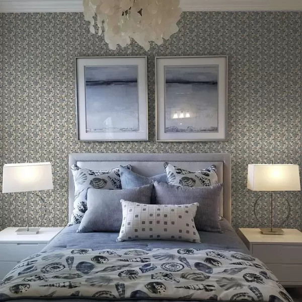 Tapeta Simetrični uzorak s plavim i bež elementima br. a00360
