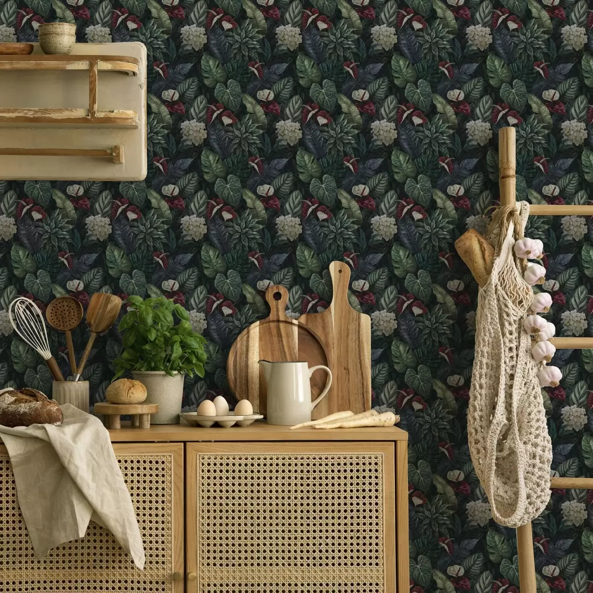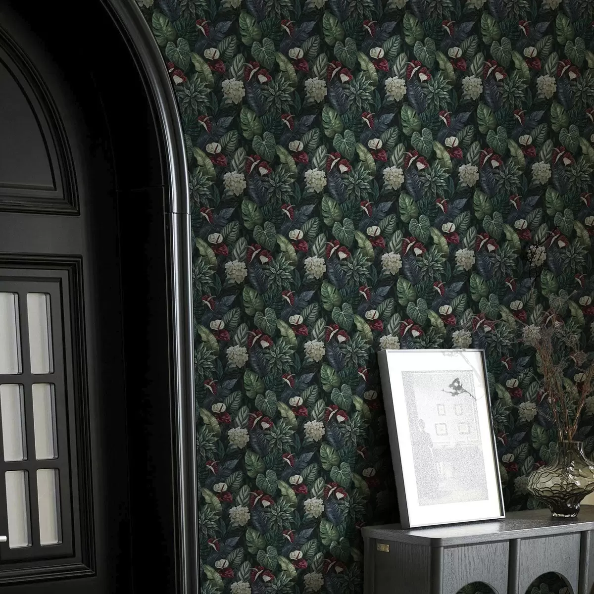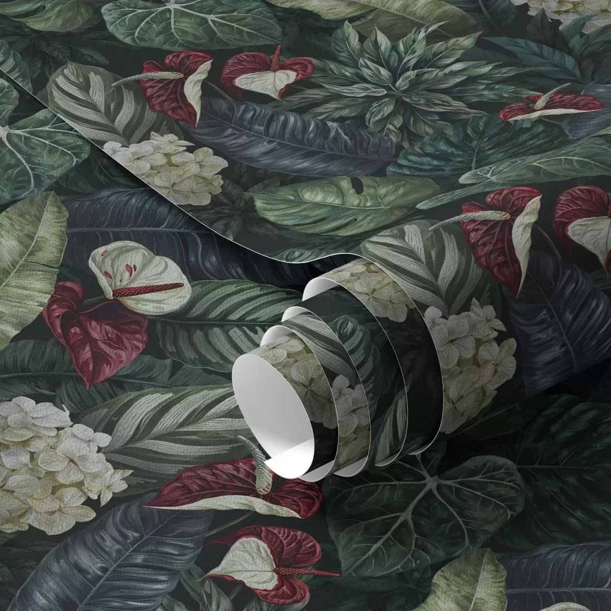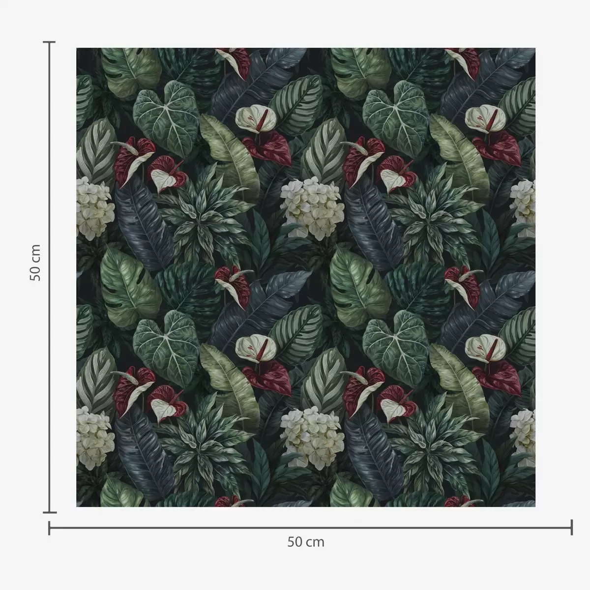 Tapeta Tropsko lišće s bijelim i crvenim cvjetovima br. a00361