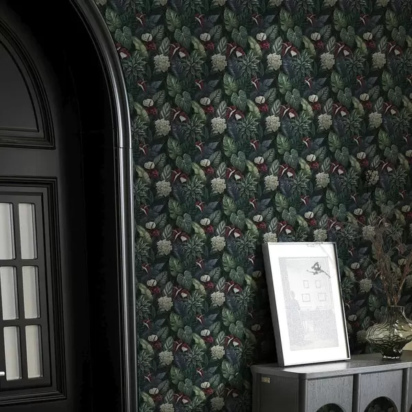 Tapeta Tropsko lišće s bijelim i crvenim cvjetovima br. a00361