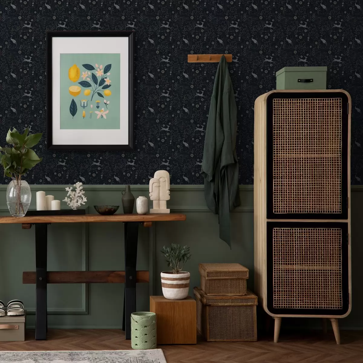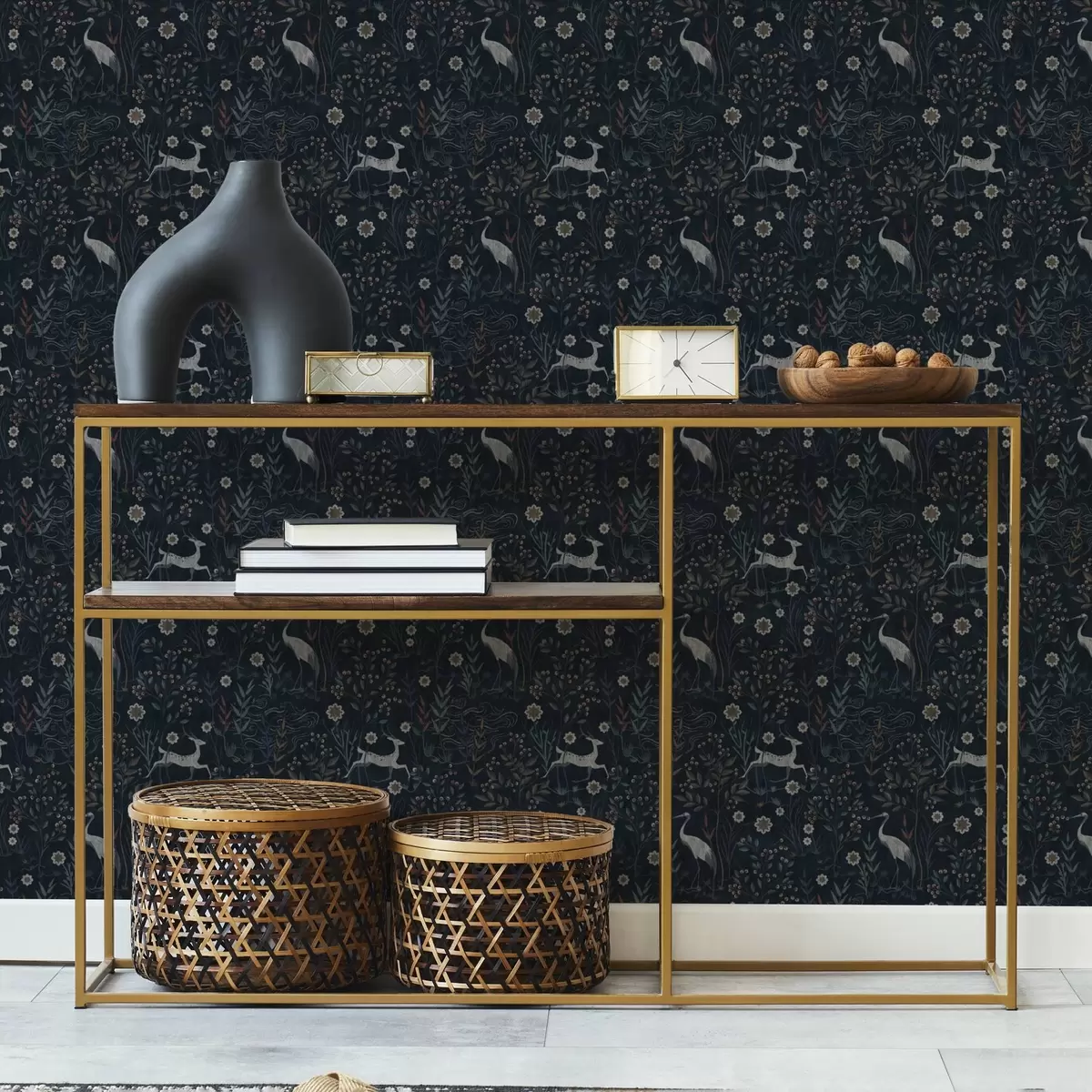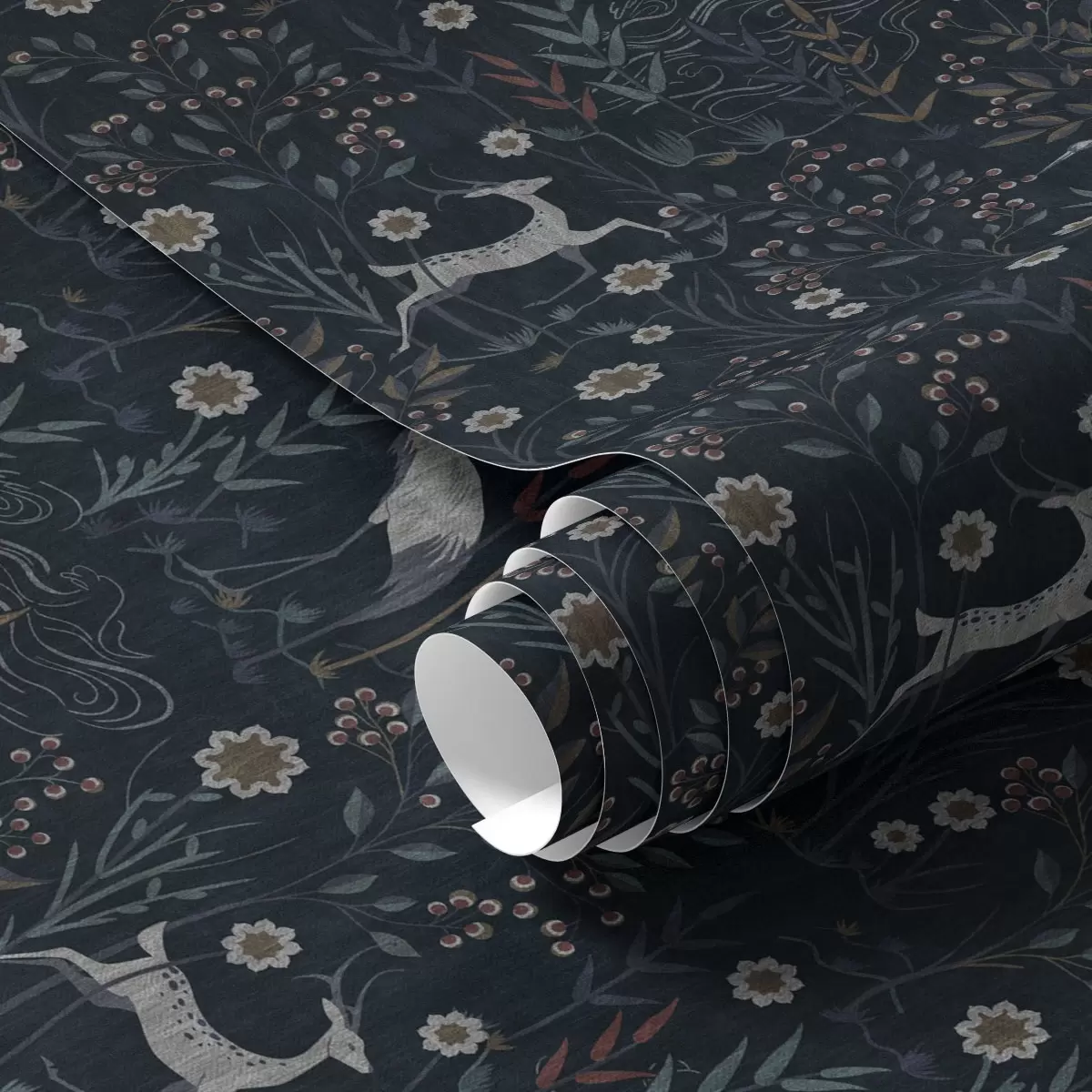 Tapeta Tamna pozadina s bijelim pticama i jelenima br. a00363