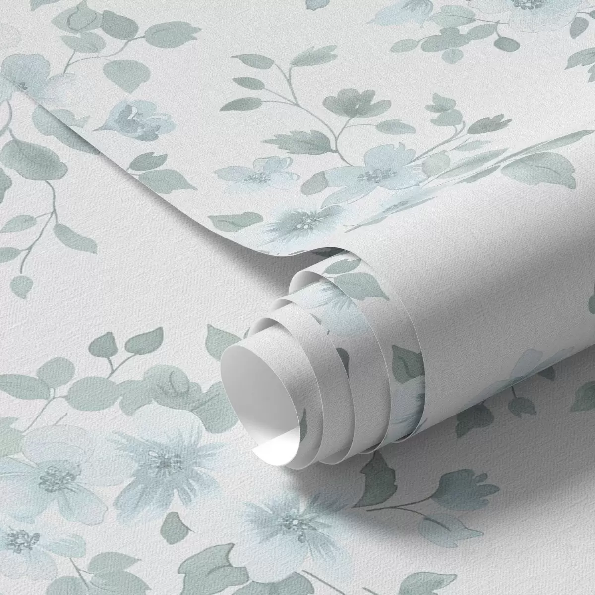 Tapeta Blijedoplavo cvijeće na bijeloj pozadini, akvarelni stil br. a00364