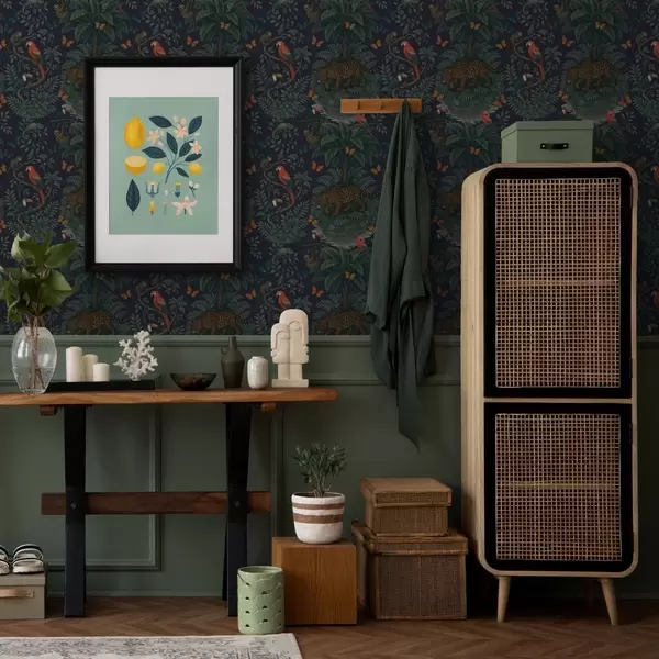Tapeta Tropska džungla s leopardom, leopardom, papigama i leptirima br. a00388