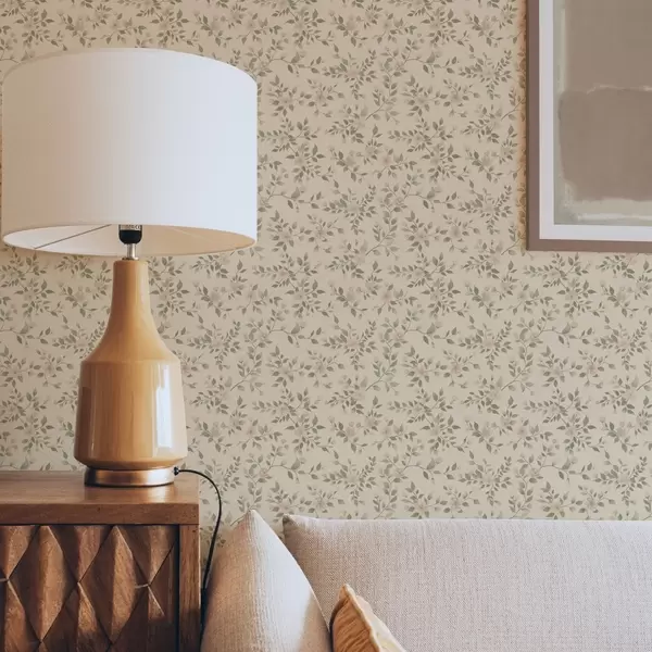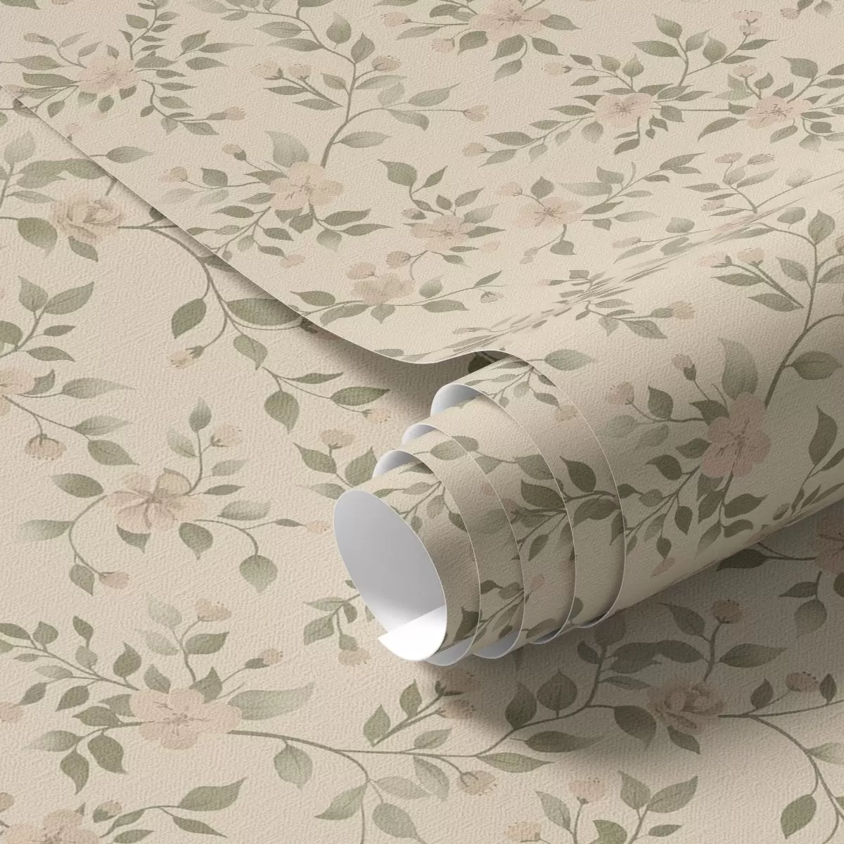 Tapeta Nježne pastelne cvjetne grančice na bež pozadini br. a00390