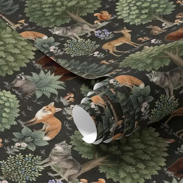 Tapeta Akvarel šumskih životinja s drvećem i gljivama br. a00391