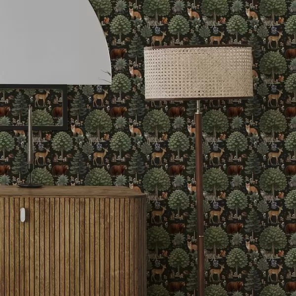Tapeta Akvarel šumskih životinja s drvećem i gljivama br. a00391