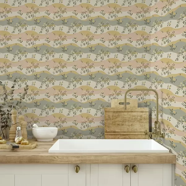Tapeta Valovito livadno cvijeće u pastelnom minimalističkom stilu br. a00396