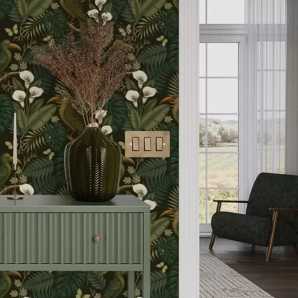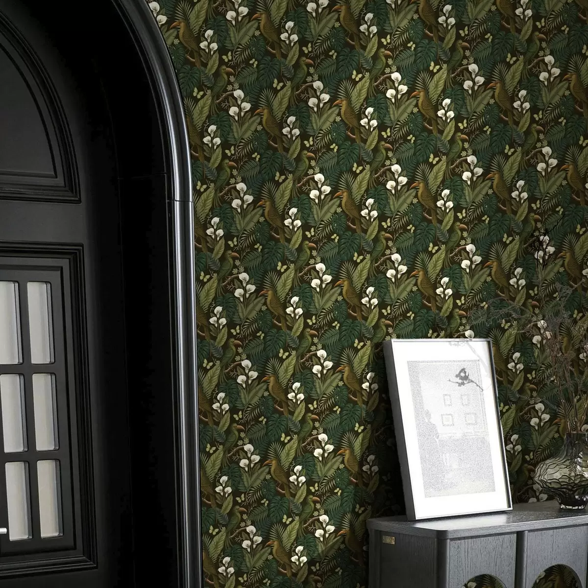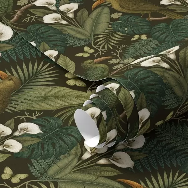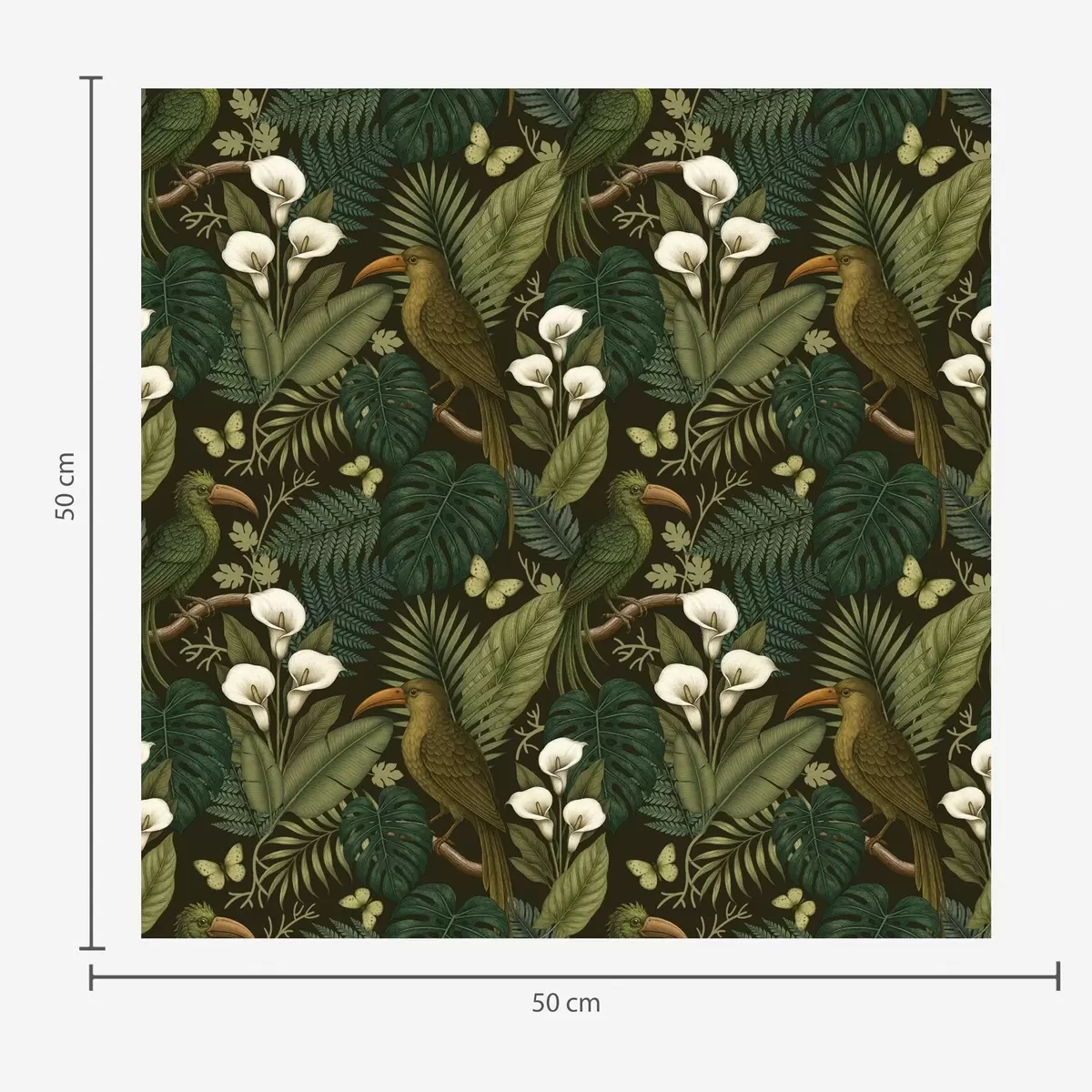Tapeta Tropske ptice i bujno zelenilo na tamnoj pozadini džungle br. a00397