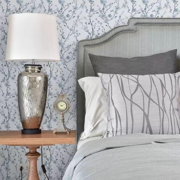 Tapeta Plavi cvjetovi trešnje na bijeloj pozadini s mekim kontrastom br. a00399