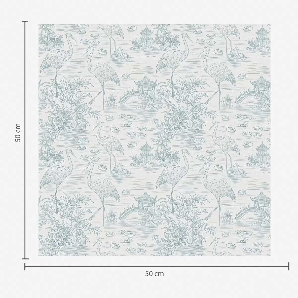 Tapeta Azijski krajolik s ždralovima, mostovima i lotosima br. a00405