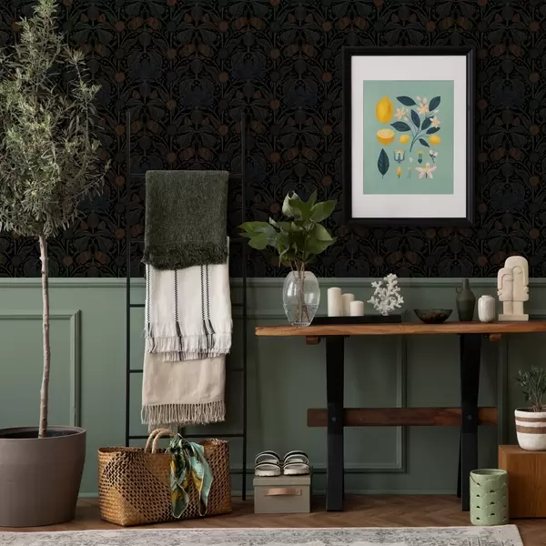 Tapeta Tamni cvjetni ornament s narančastim akcentima br. a00411