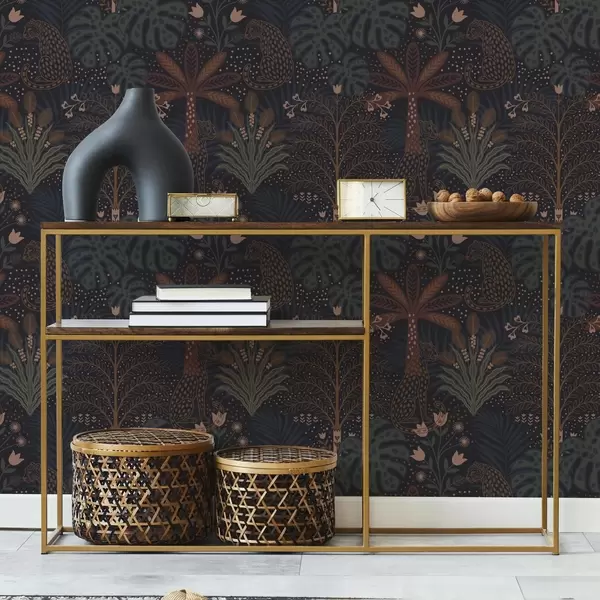 Tapeta Tamna džungla s leopardima, palmama i cvijećem br. a00424