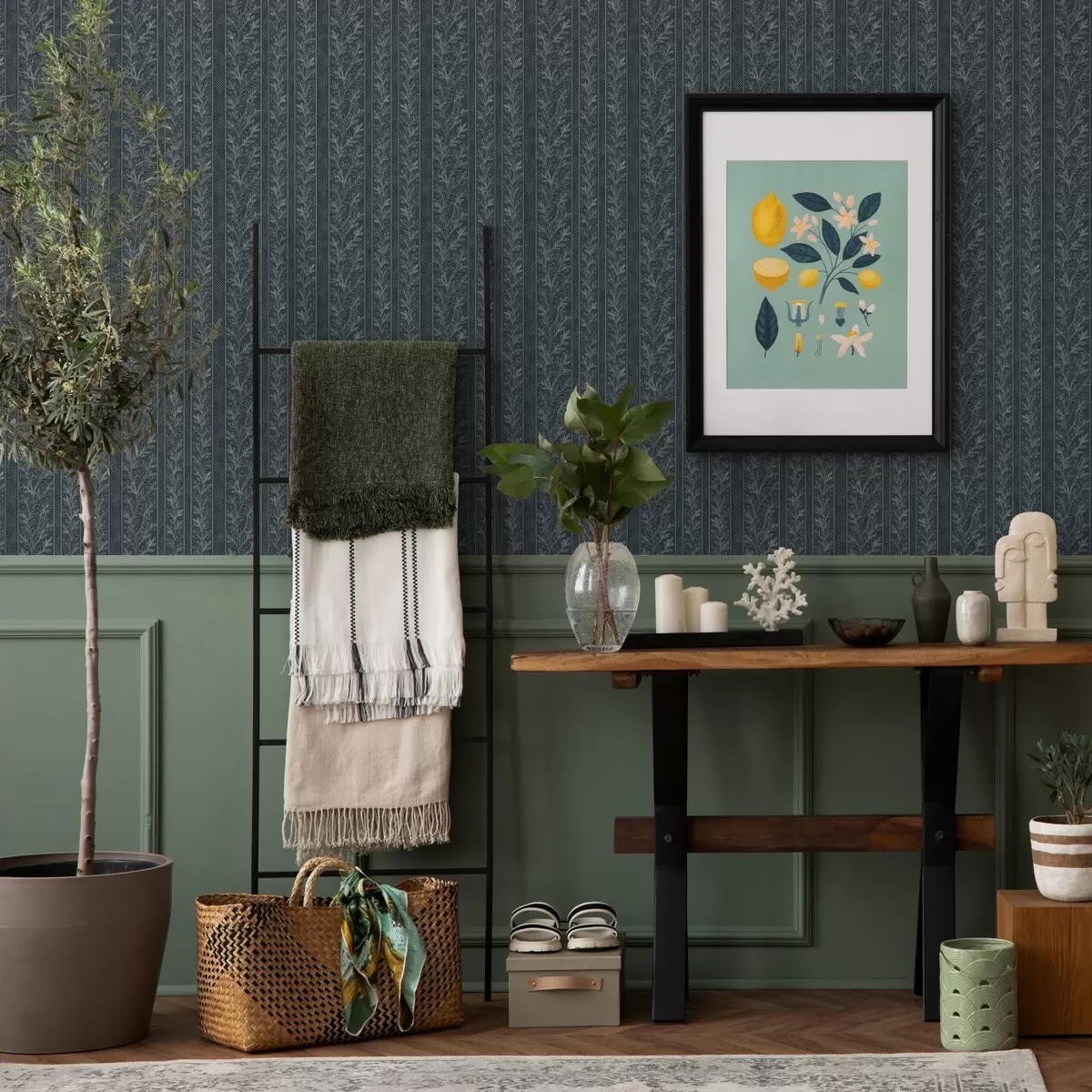 Tapeta Prugasti uzorak s grančicama na plavoj pozadini br. a00425