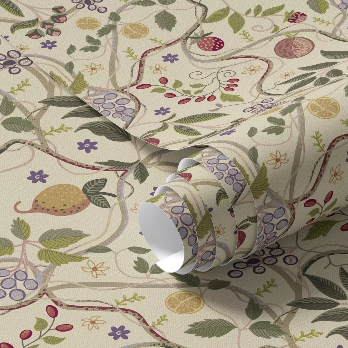 Tapeta Voćni uzorak s bobicama, granama i cvijećem br. a00428